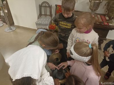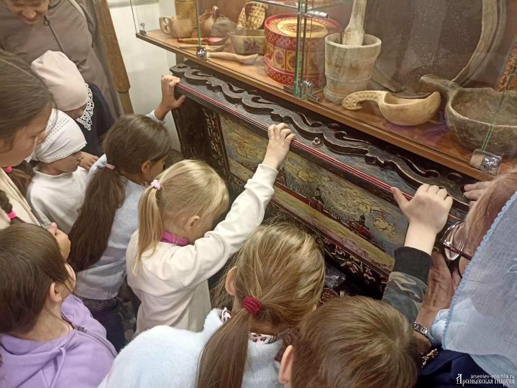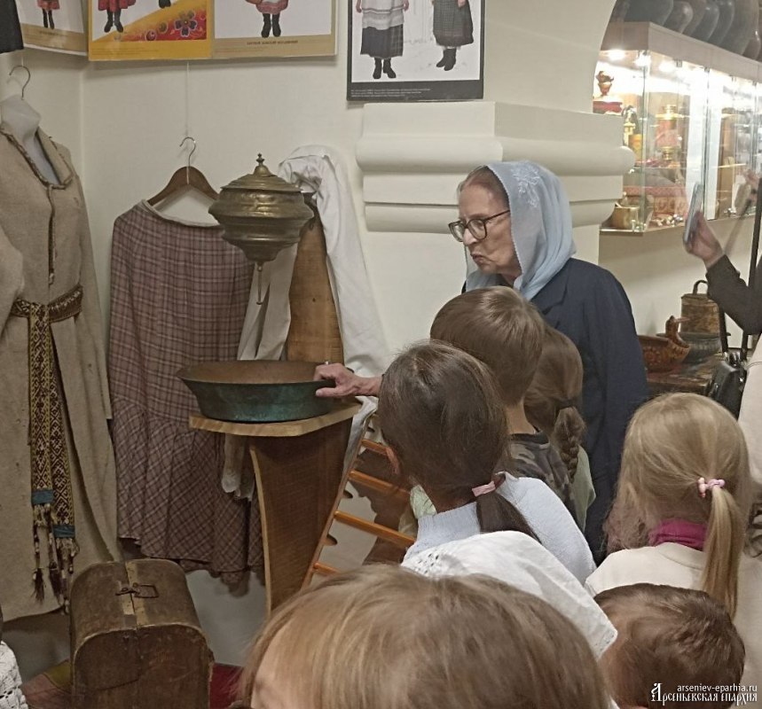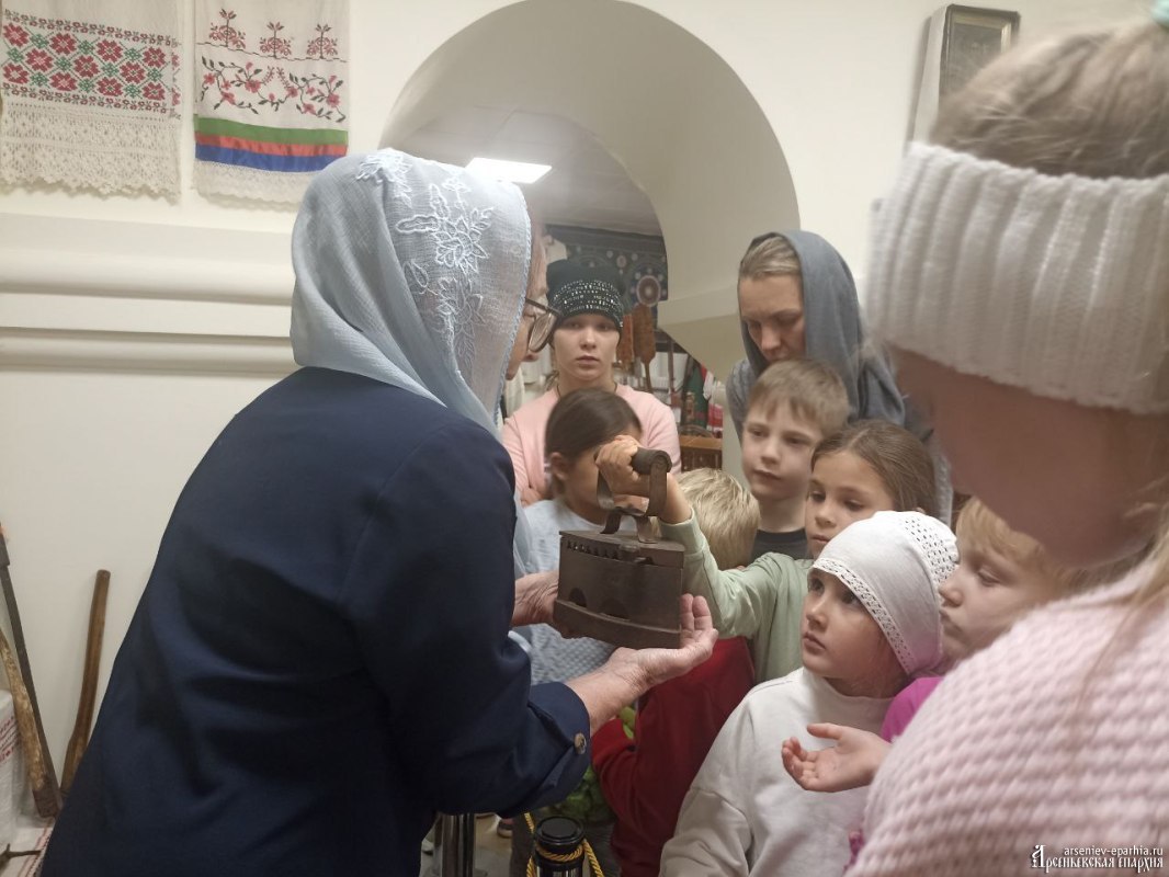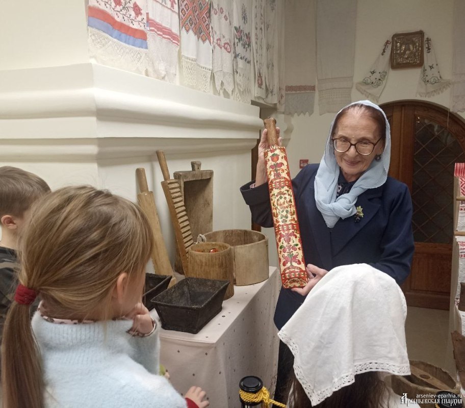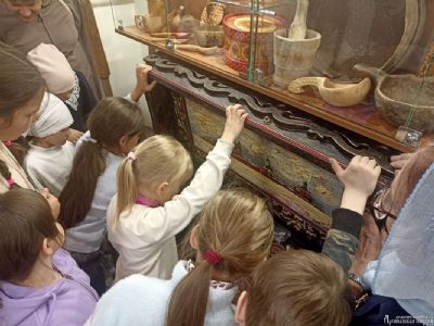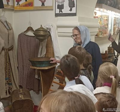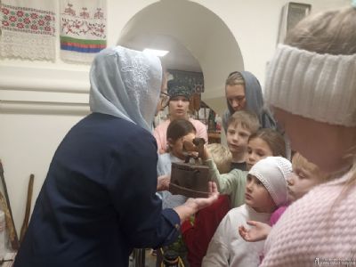 Ирина Геннадьевна Бердникова, руководитель Отдела религиозного образования и катехизации, в доступной для детей форме рассказала об истории и культуре нашей Родины. Ребята увидели подлинные женские костюмы разных регионов, узнали о ремеслах, о буднях крестьян, о хозяйственных заботах и обычаях, а также смогли не только потрогать экспонаты, но и попробовать их в деле.