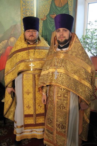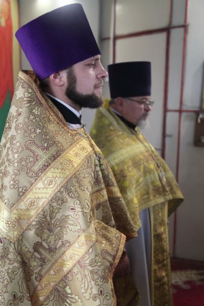 Его Преосвященству сослужили: митрофорный протоиерей Владимир Капитанюк, настоятель храма Вознесения Господня с. Спасское, иерей Иоанн Капитанюк, настоятель храма Рождества Христова г. Находки; протоиерей Иоанн Манжас, клирик Свято-Рождественского храма, иерей Роман Капитанюк, настоятель храма ап. Андрея Первозванного, ЗАТО г. Фокино, иеромонах Ермоген (Крещенко).