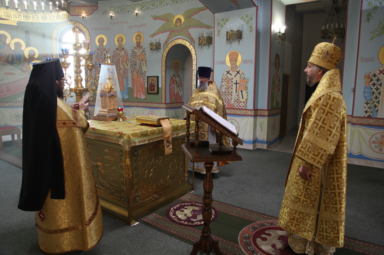 Его Преосвященству сослужили: иерей георгий Москаленко и иеромонах Ермоген (Крещенко).