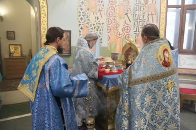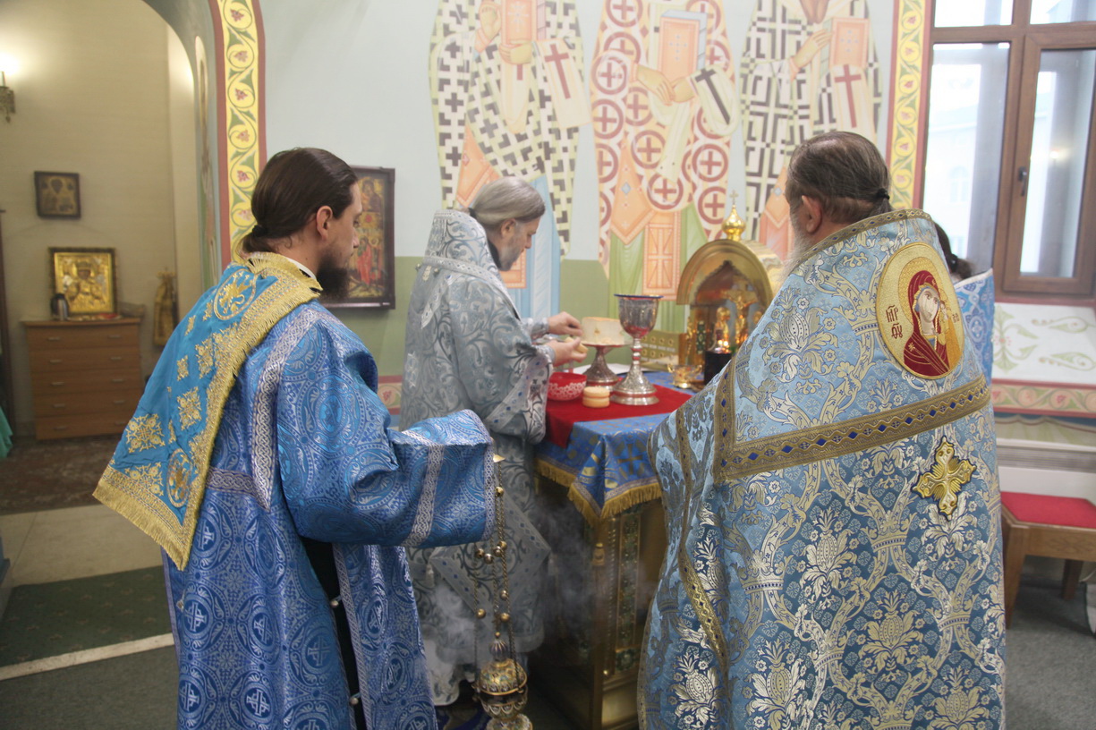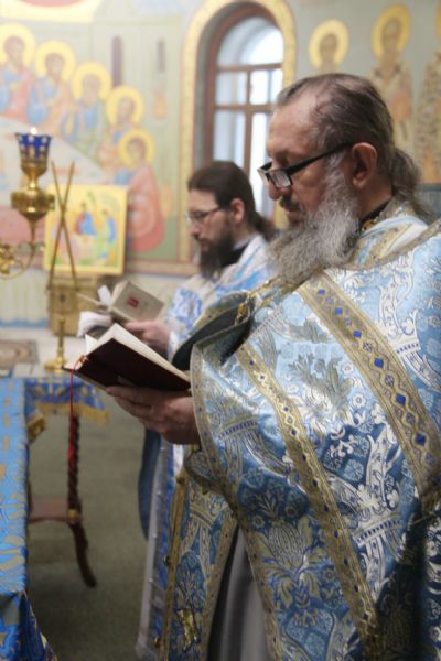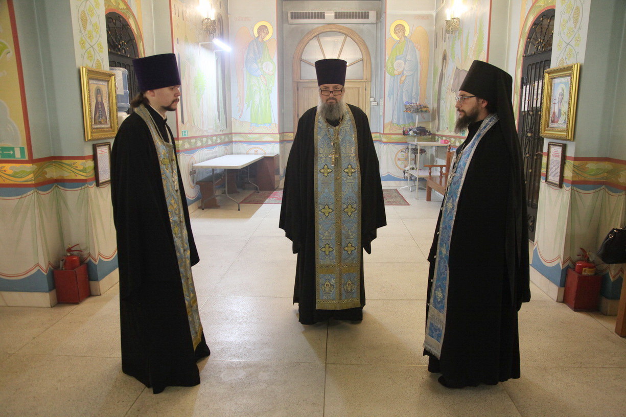 Его Преосвященству сослужили: иерей Георгий Москаленко; иерей Андрей Калнин; иерей Виталий Шаркеев; иерей Андрей Попов; иеромонах Ермоген (Крещенко).