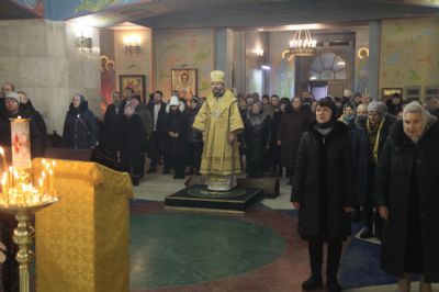 После чтения уставного Евангельского зачала и сугубой ектении епископ Николай вознес молитву о мире на Украине.По заамвонной молитве епископ Николай обратился к прихожанам храма с воскресной проповедью, в которой объяснил духовный смысл Евангелия, прочитанного за богослужением.