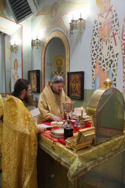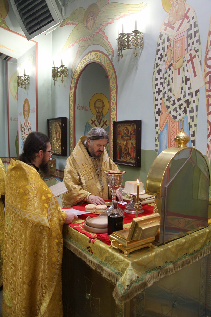 Его Преосвященству сослужили: иерей Андрей Калнин, ризничий Казанского Кафедрального собора,иерей Андрей Попов и иеромонах Ермоген (Крещенко).