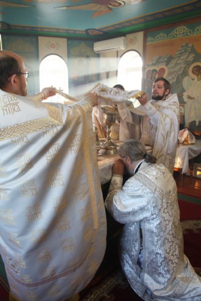 Его Преосвященству сослужили: иерей Иоанн Капитанюк, настоятель Свято-Рождественского храма, иерей Роман Капитанюк, настоятель храма св. Андрея Первозванногого ЗАТО г. Фокино; протоиерей Иоанн Манжас; иеромонах Ермоген (Крещенко).