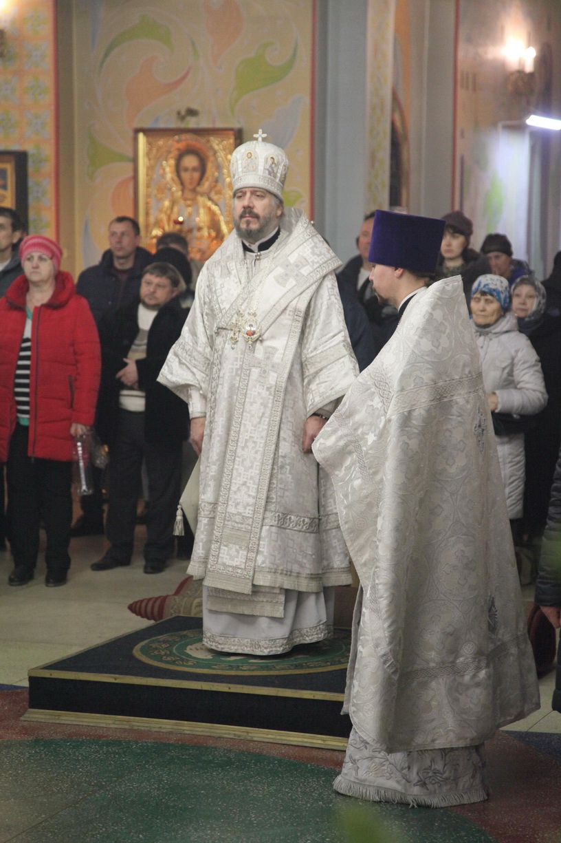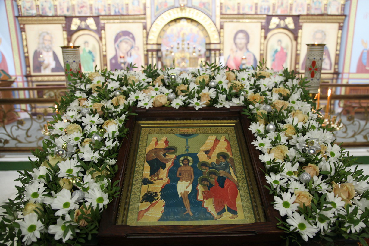 По заамвонной молитве епископ Николай, в сослужении духовенства собора, совершил чин Великого освящения воды, по окончании которого возглавил праздничное славление и обратился к молящимся с проповедью о празднике Святого Богоявления: «Во имя Отца, и Сына, Святого Духа! Иоанн Предтеча крестил людей в водах Иорданских. Люди сходили в эти воды ветхими, а выходили новыми, обновленными покаянием, потому что грех человеческий омывался водою. Но затем на Иордан к Иоанну пришел Сам Господь Иисус Христос, чтобы погрузиться в воды Иордана — не для очищения от греха, но для того, чтобы освятить их, преобразить, наполнить жизнью. Иисус пришел на землю, чтобы взять на Себя грех мира: «Он взял на Себя наши немощи, и понес наши болезни» (Ис. 53:4). И в воды Иорданские Он сошел, чтобы взять на Себя тяжесть греха и смерти, и водную стихию вновь сделать стихией жизни.