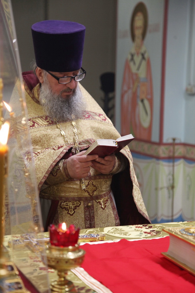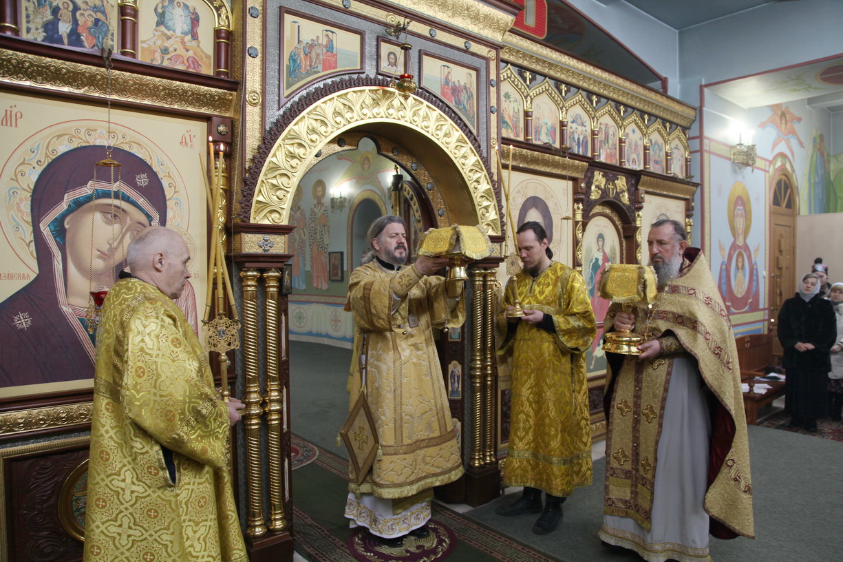 Его Преосвященству сослужили: иерей Георгий Москаленко; иерей Андрей Попов; иерей Виталий Шаркеев и иерей Андрей Попов.