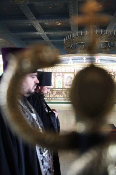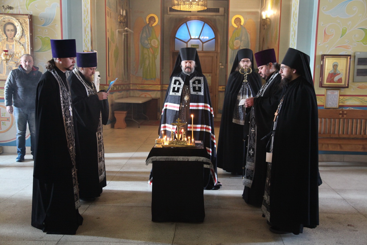 Согласно уставу, в храме были совершены чинопоследования утрени, часов, изобразительных и вечерни. По завершении богослужения Владыка возглавил чин литии о усопших и обратился к молящимся с проповедью.