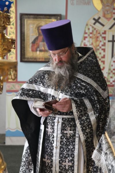 Его Преосвященству сослужили: иерей Георгий Москаленко, иерей Андрей Попов, иеромонах Ермоген (Крещенко), настоятель храма Казанской иконы Божией Матери с. Казанка протоиерей Павел Петрунин.