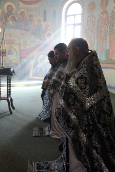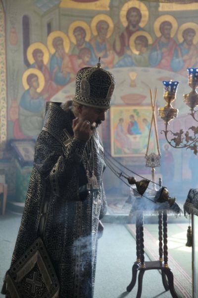 Его Преосвященству сослужили: иерей Георгий Москаленко; иерей Андрей Калнин, ризничий собора; иерей Виталий Шаркеев; иерей Андрей Попов; иеромонах Ермоген (Крещенко).