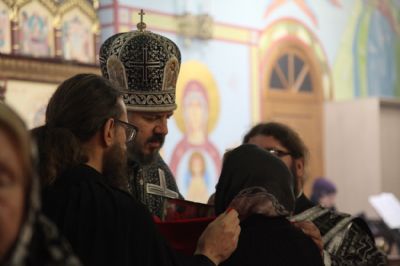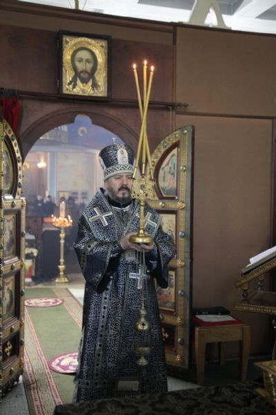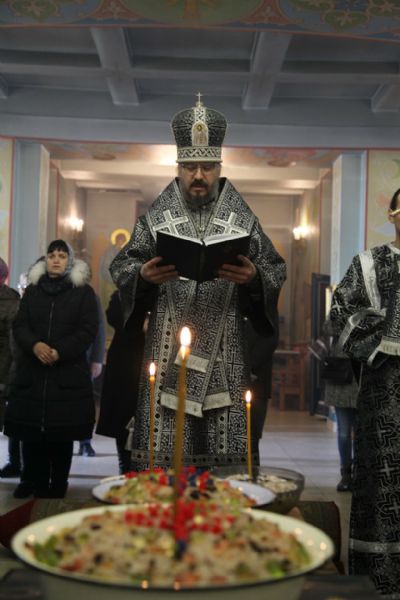 По сложившейся традиции, по окончании Литургии Преждеосвященных Даров в пятницу первой седмицы Великого поста был прочитан канон великомученику Федору Тирону, по окончании которого владыка Николай освятил коливо и обратился к духовенству и к прихожанам с архипастырским словом.