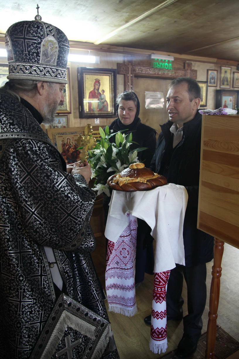 После окончании богослужения епископ Николай ознакомился с ходом строительства нового храма в честь преподобных Макария Египетского, Силуана Афонского и Онуфрия Великого г. Партизанска.