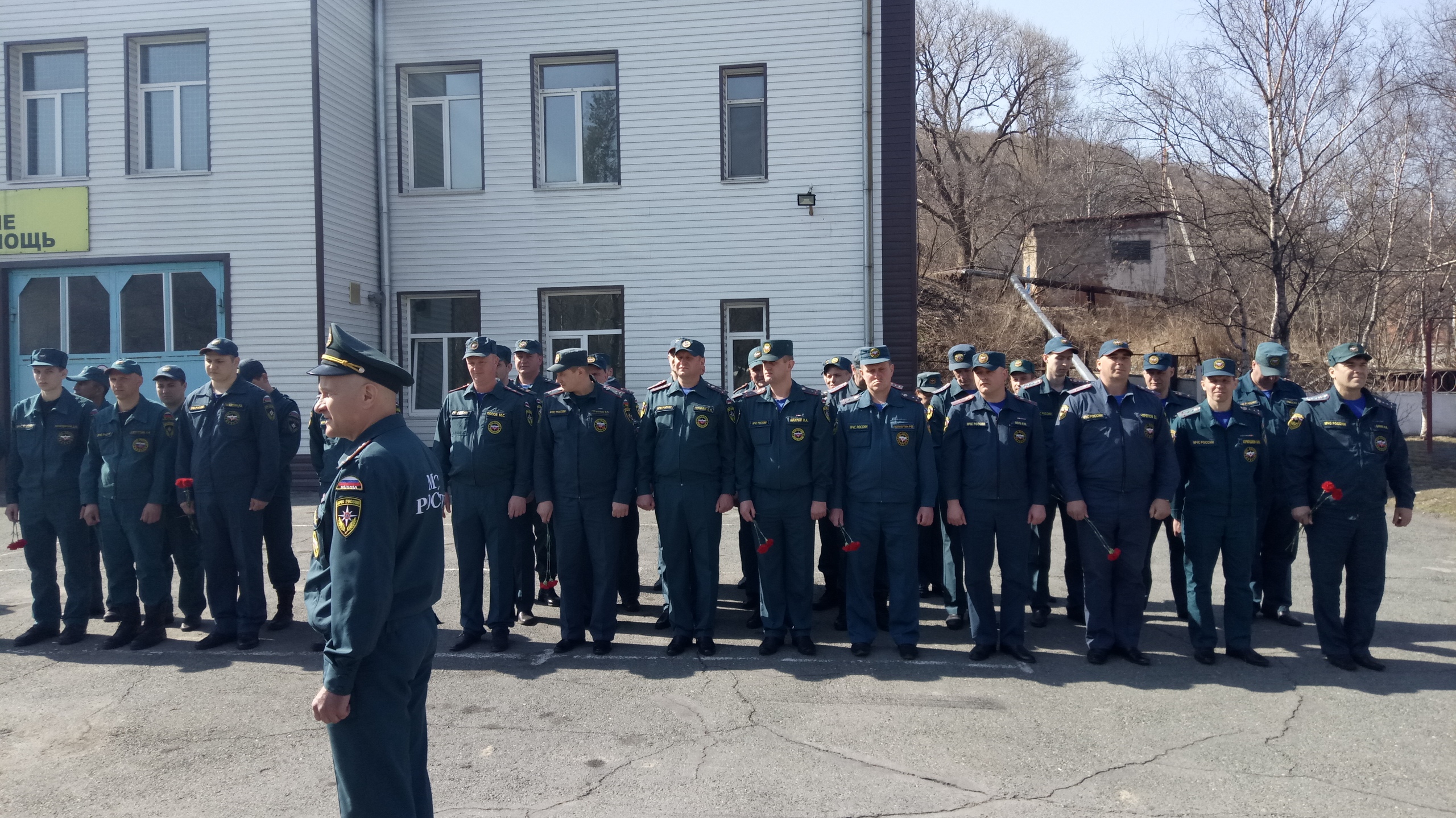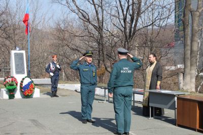 В преддверии праздника перед мемориалом во дворе 8 городской пожарной части 1 отряда Федеральной противопожарной части собрались руководство и личный состав Приморского управления МЧС по г. Находка. Состоялось мероприятие по возложению цветов и венков к мемориалу погибшим при исполнении служебных обязанностей сотрудникам.
