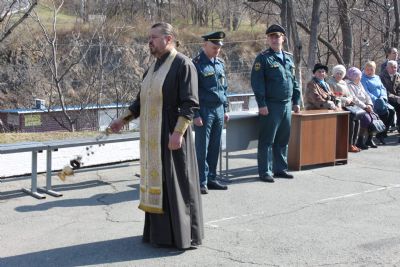 Клирик Казанского Кафедрального собора иерей Виталий Шаркеев совершил заупокойную литию по сотрудникам МЧС погибшим при исполнении служебных обязанностей. С 1946 года при исполнении служебного долга погибли 10 находкинцев - сотрудников МЧС