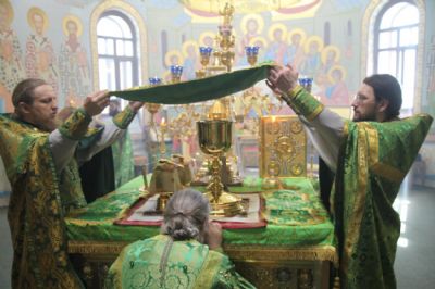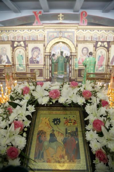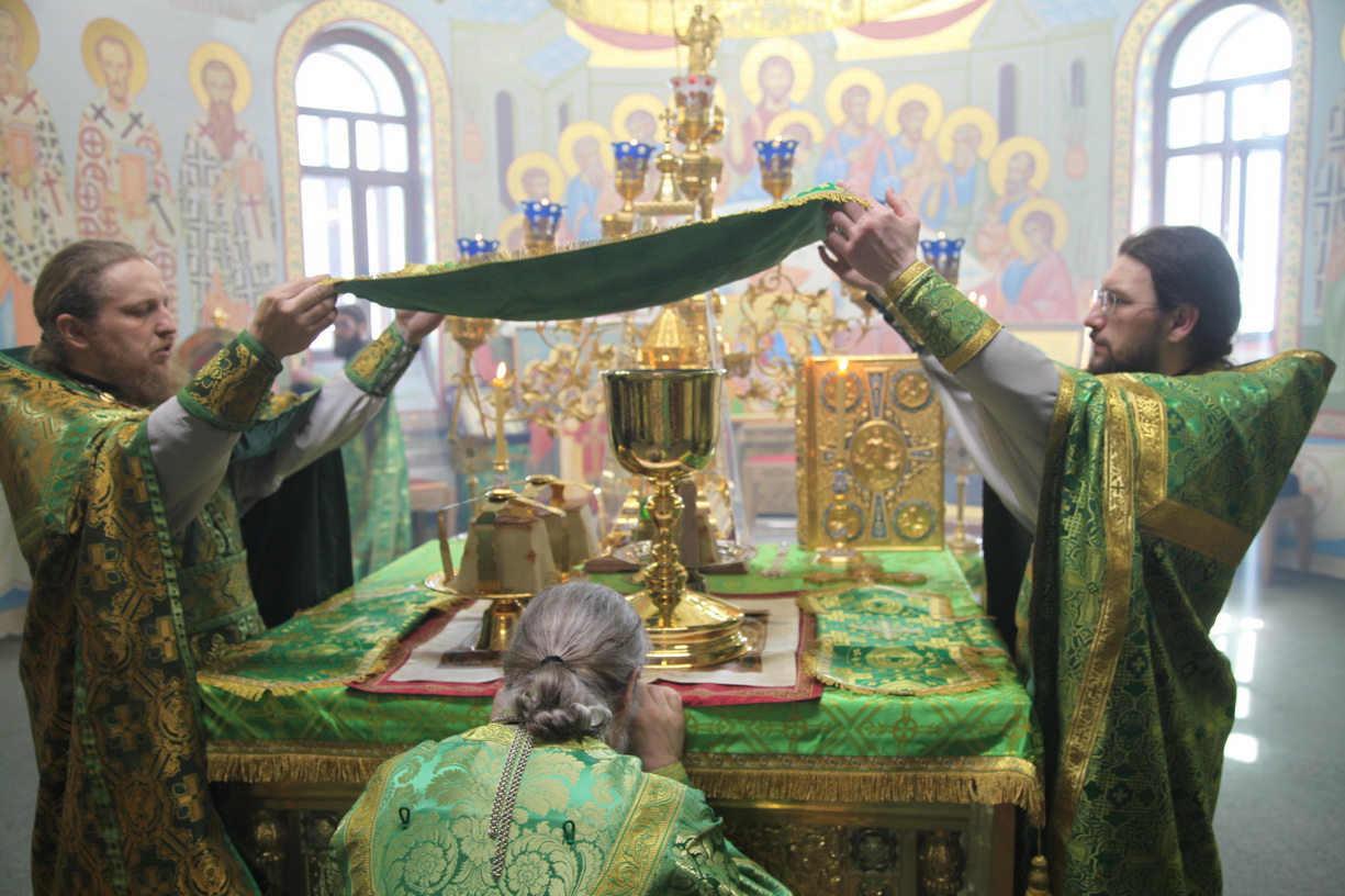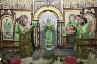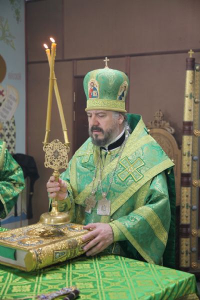 Его Преосвященству сослужили: иерей Георгий Москаленко; иерей Андрей Калнин; ризничий Казанского Кафедрального собора; иерей Андрей Попов, иеромонах Ермоген (Крещенко).