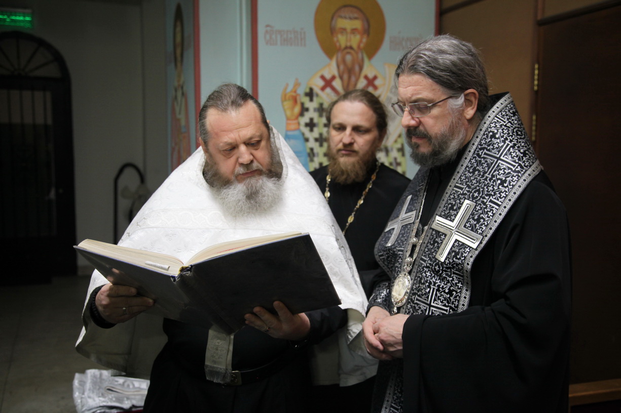 Его преосвященству сослужили: иерей Георгий Москаленко; иерей Андрей Калнин, ризничий собора; иерей Виталий Шаркеев; иерей Андрей Попов; иеромонах Ермоген (Крещенко).