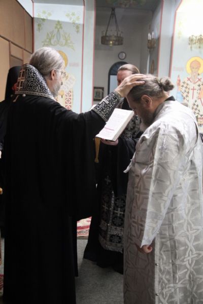 За вечерним богослужением Владыка постриг во чтеца, а затем возвел в иподиаконы монаха Гавриила (Гаврика).