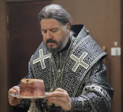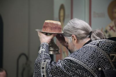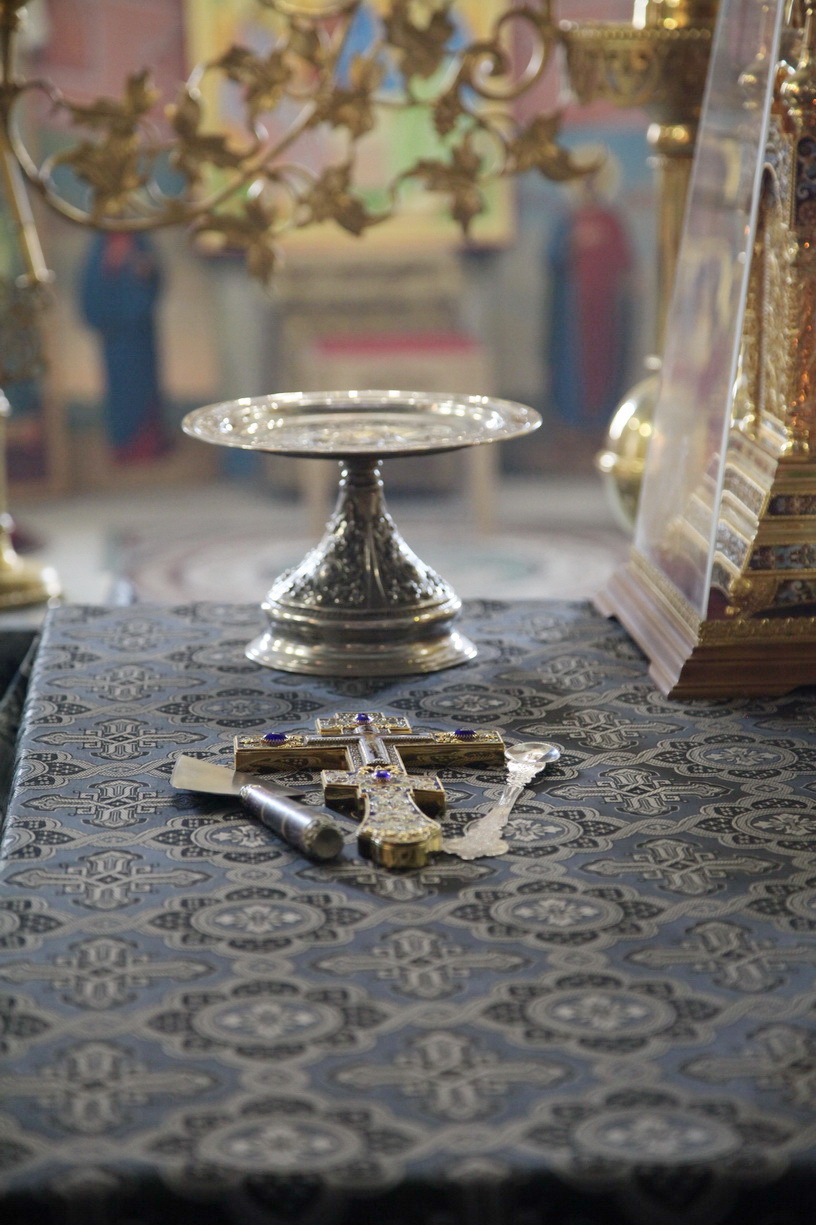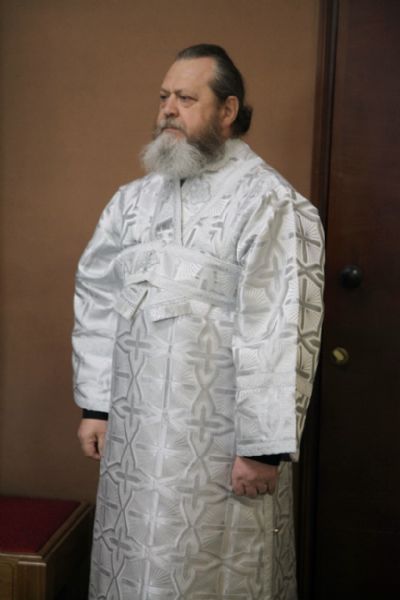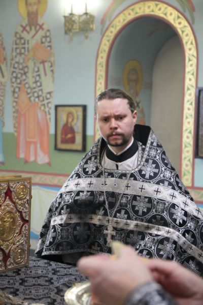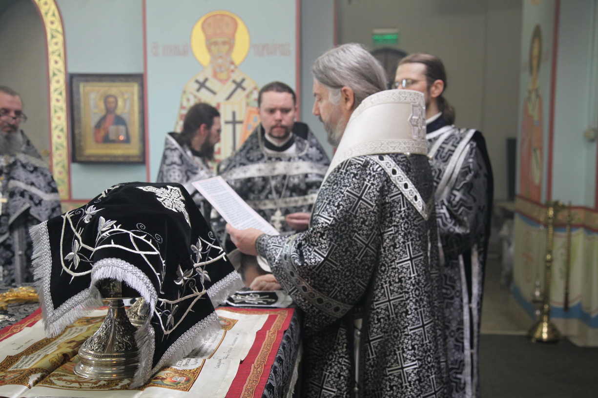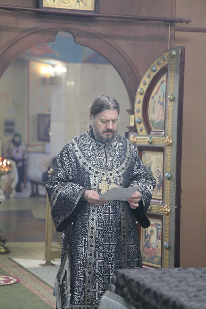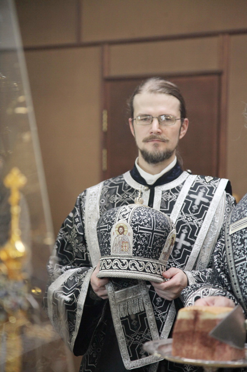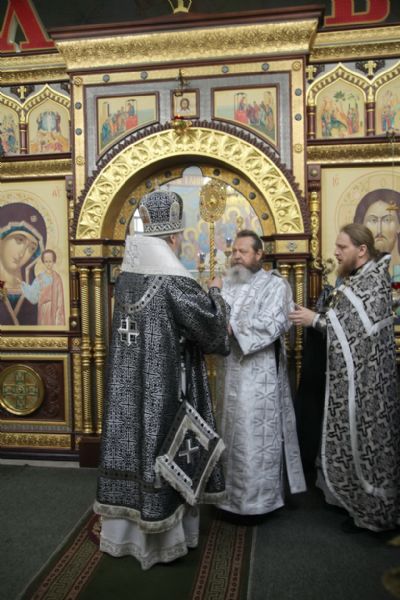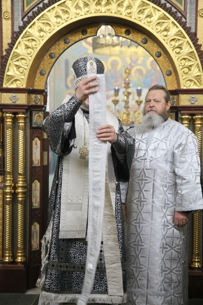 Его преосвященству сослужили: иерей Георгий Москаленко; иерей Андрей Калнин, ризничий собора; иерей Андрей Попов; иеромонах Ермоген (Крещенко).
