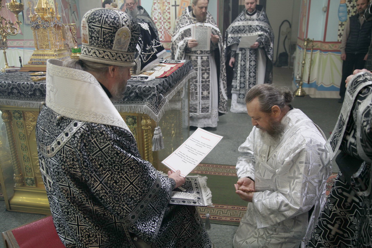 За богослужением Владыка Николай рукоположил монаха Гавриила (Гаврика) в сан иеродиакона. Иеродиакон Гавриил будет нести свое служение в Казанском Кафедральном соборе г. Находки.