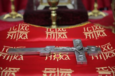 На малом входе по благословению Святейшего Патриарха Московского и всея Руси Кирилла, в связи с праздником Пасхи Христовой, протоиерей Василий Кабанов был удостоен правом ношения второго наперсного креста с украшениями.