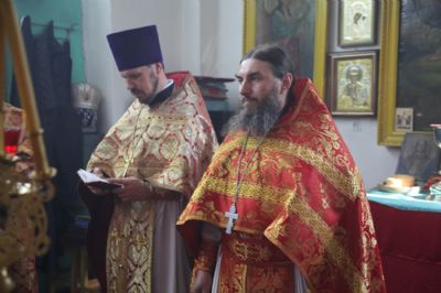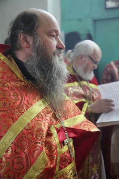 Его Преосвященству сослужили: митрофорный протоиерей Василий Кабанов, настоятель Свято-Рождественского храма, протоиерей Павел Петрунин, настоятель храма в честь Казанской иконы Божией Матери с. Казанка; протоиерей Роман Черников, настоятель храма в честь блж. Матроны Московской п. Шкотово; иерей Сергий Вовк, клирик храма Рождества Богородицы г. Партизанска.