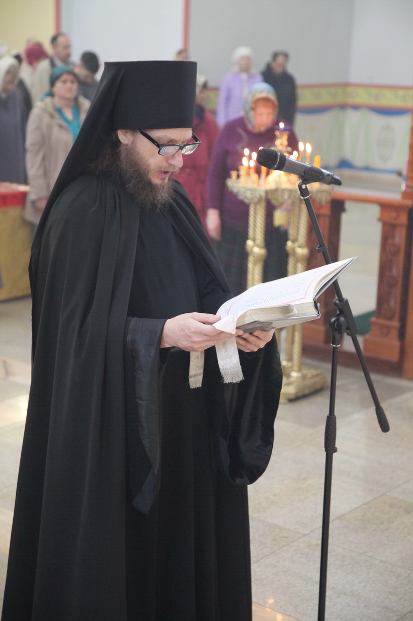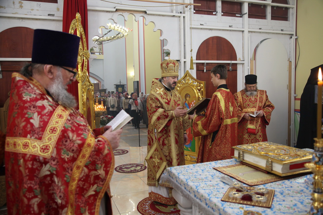 Его Преосвященству сослужили: иерей Георгий Москаленко; иерей Виталий Шаркеев; иеромонах Ермоген (Крещенко).
