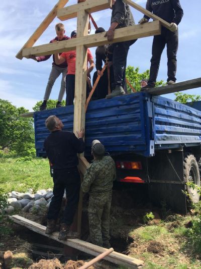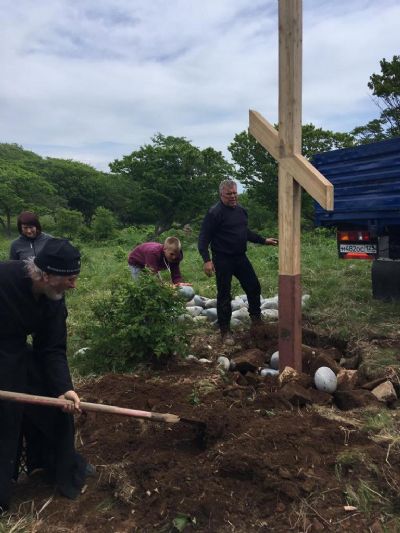 В установке креста приняли участие: протоиерей Александр Коваленко настоятель храма свмч. Георгия Победоносца п. Дунай, игумен Варнава настоятель храма прп. Сергия Радонежского о. Путятин, глава городского округа ЗАТО г. Фокино А.С Баранов, семья Терентьевых.