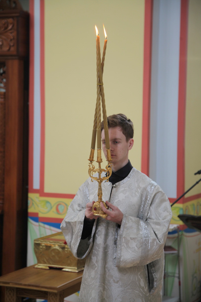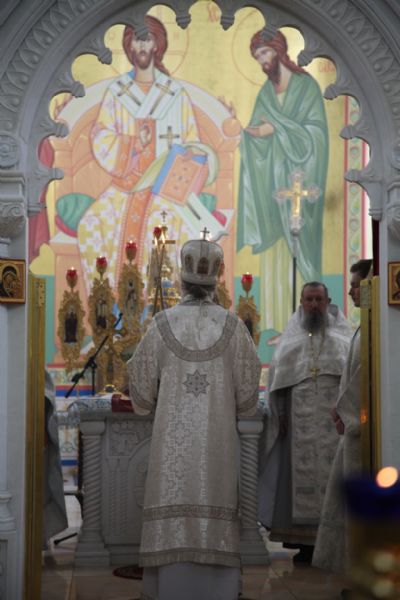 По заамвонной молитве епископ Николай, в сослужении духовенства собора, возглавил праздничное славление, по окончании которого обратился к присутствующим с проповедью, с такими словами: В течение сорока дней восставший из мертвых Господь являлся женам-мироносицам, ученикам, утратившим веру "ради страха иудейска". Господь явился апостолам во плоти, обратив тем самым внимание на то, что является не только истинным Богом, но и истинным человеком.