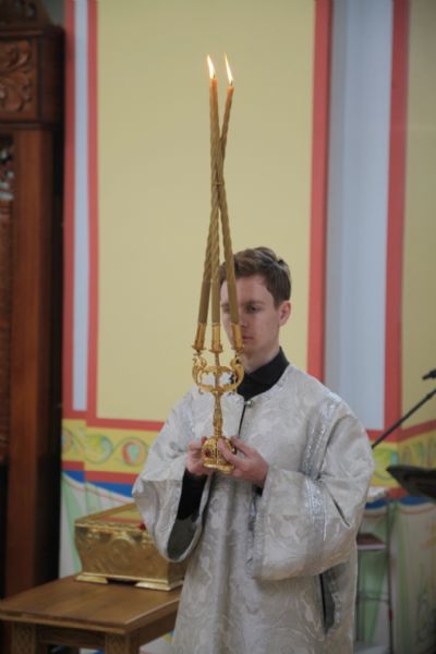 Накануне вечером епископ Николай возглавил всенощное бдение в Казанском соборе.