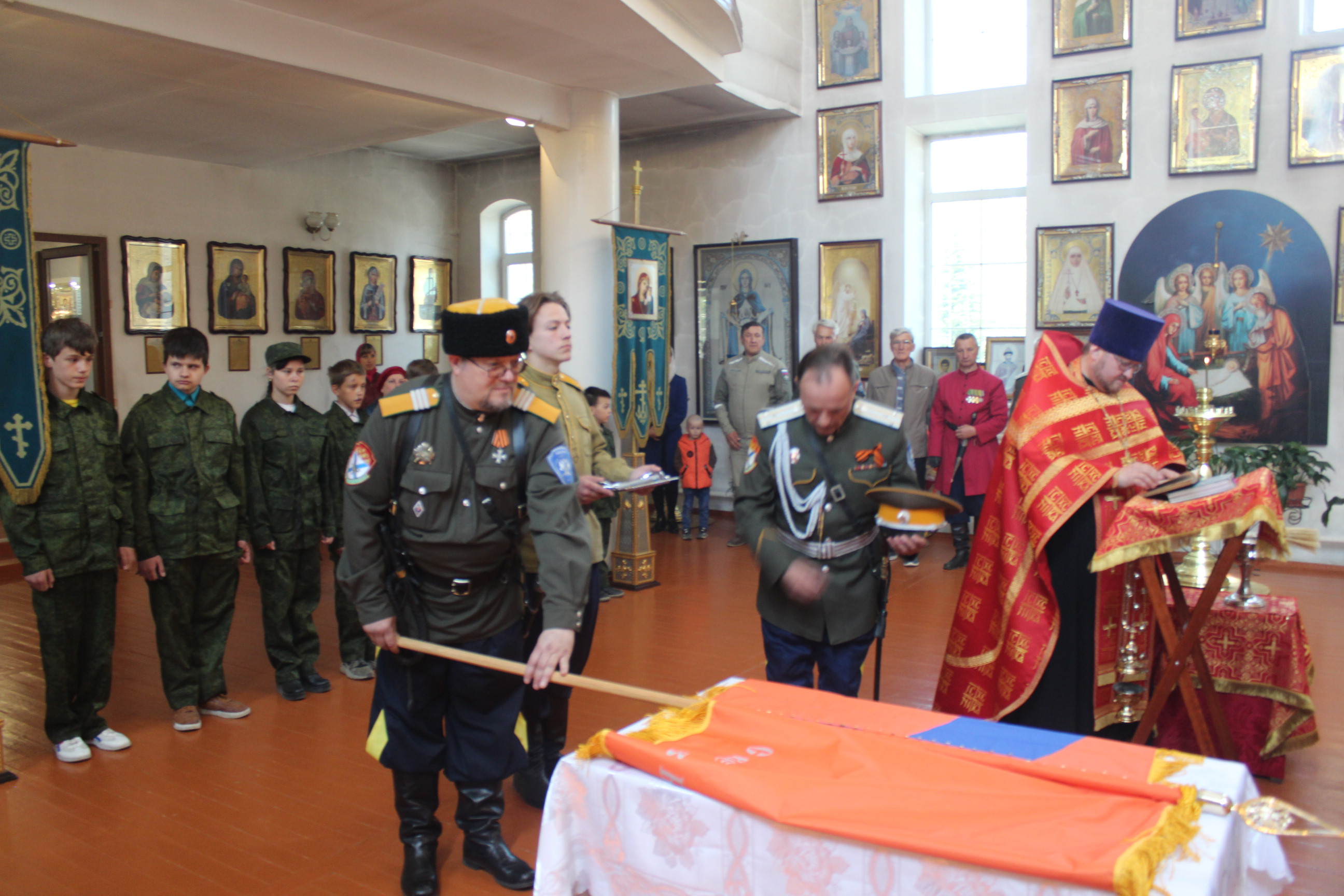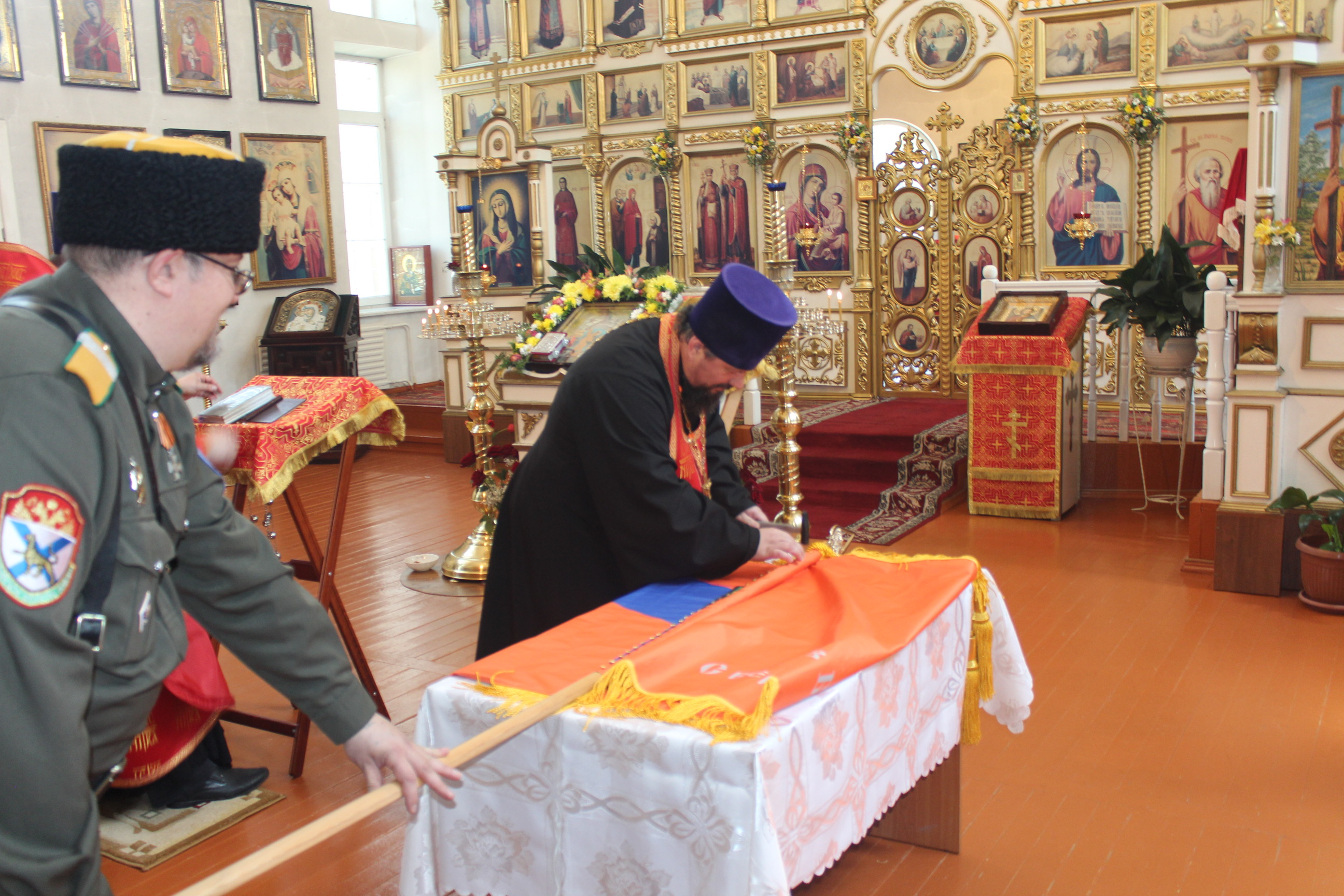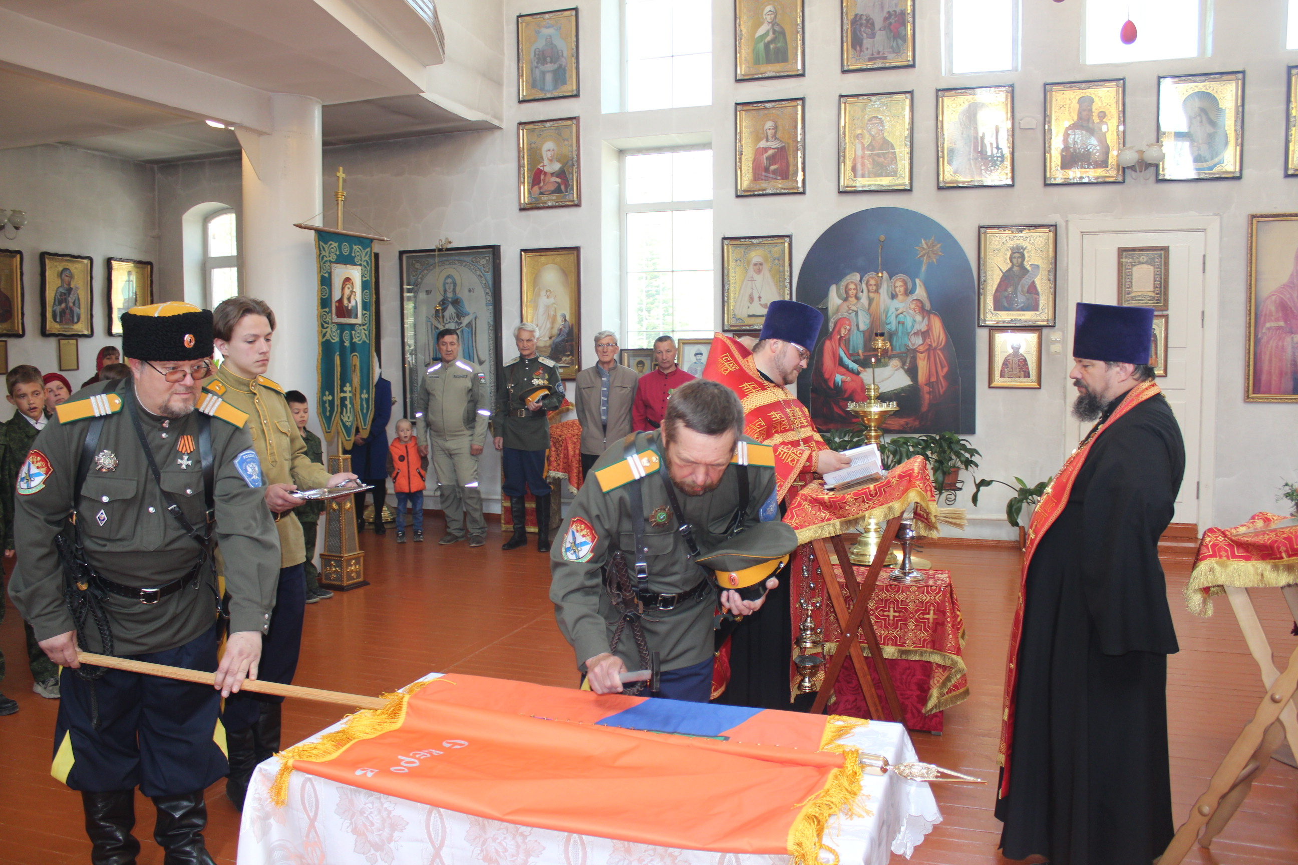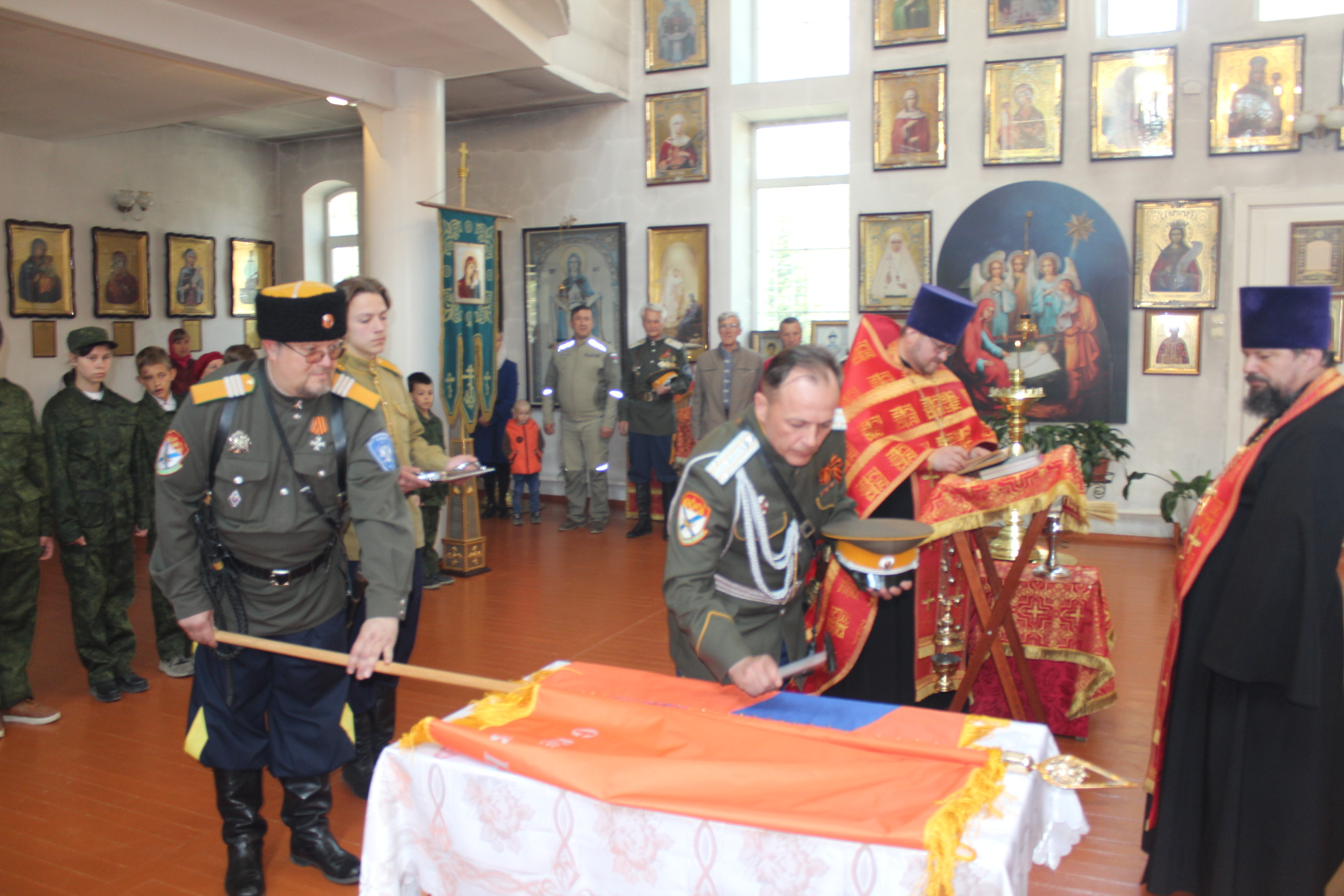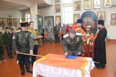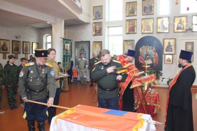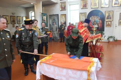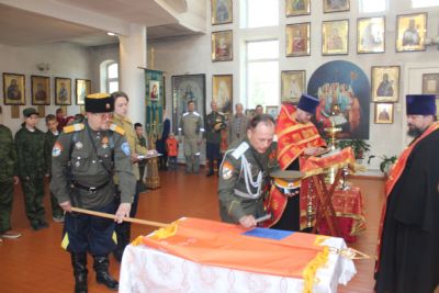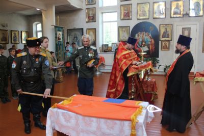 Во-первых, станица «Медвежья» обрела свое знамя. В этот день состоялся обряд «Прибивания знамени к древку» и последующее его освящение чином, установленным Русской Православной Церковью.