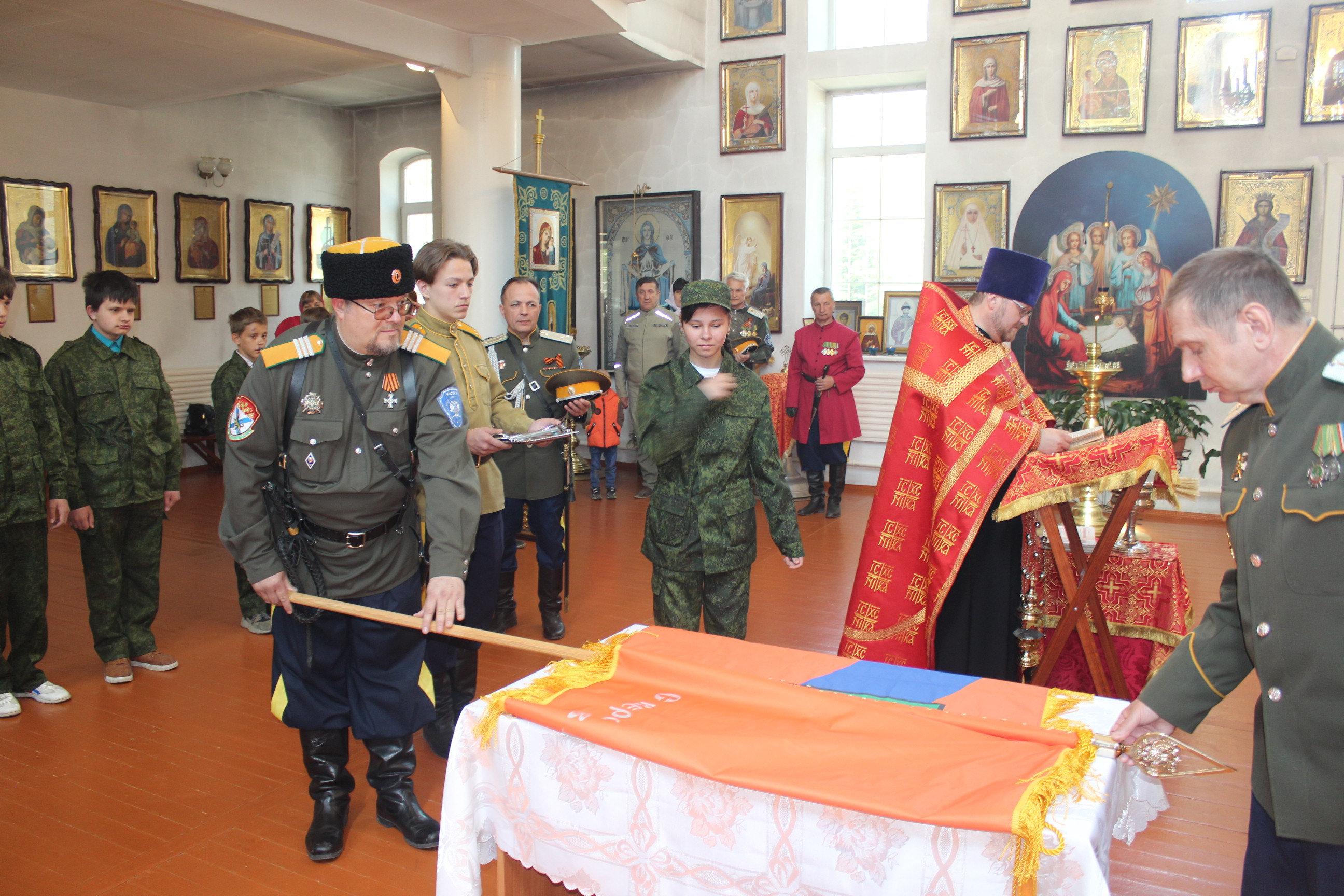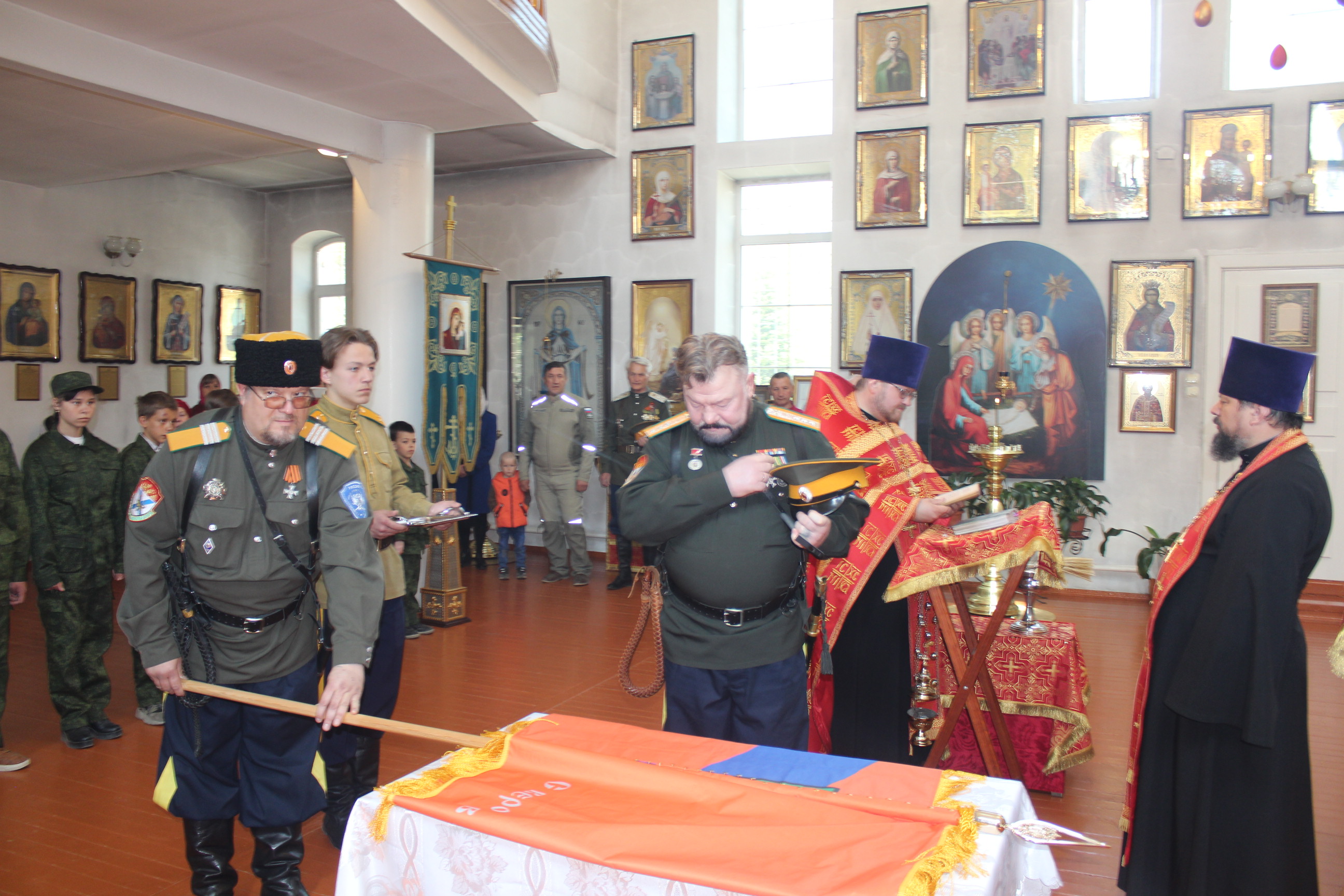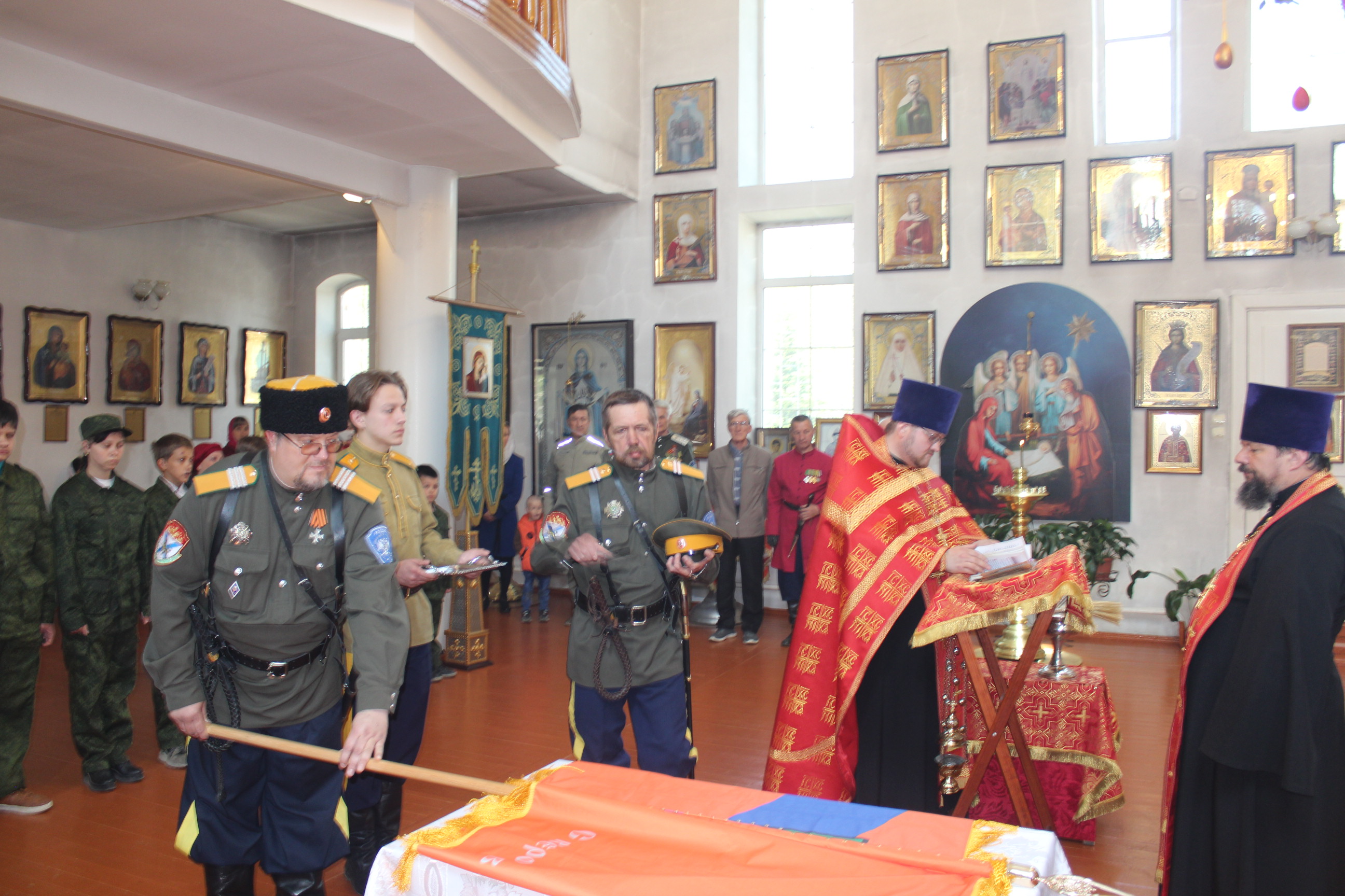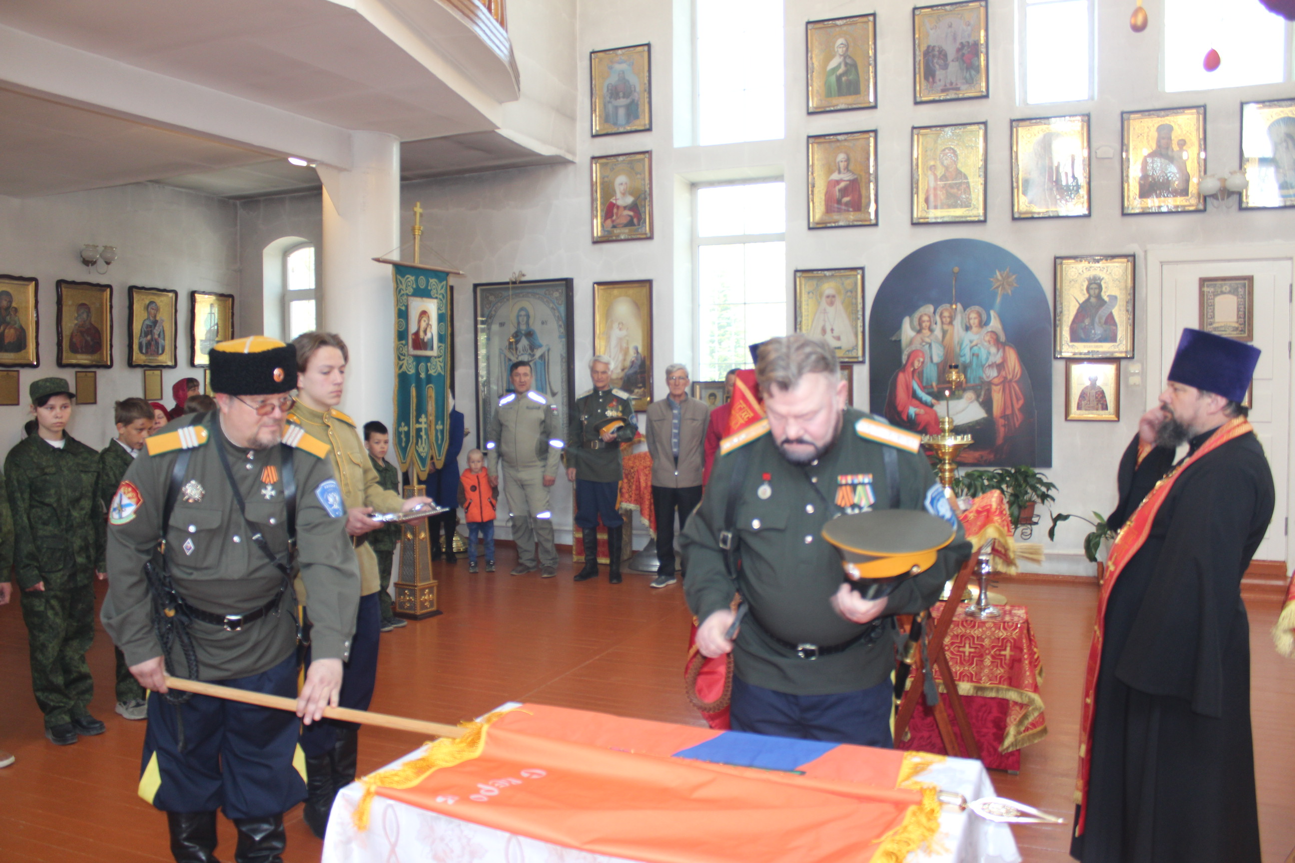 Во-первых, станица «Медвежья» обрела свое знамя. В этот день состоялся обряд «Прибивания знамени к древку» и последующее его освящение чином, установленным Русской Православной Церковью.