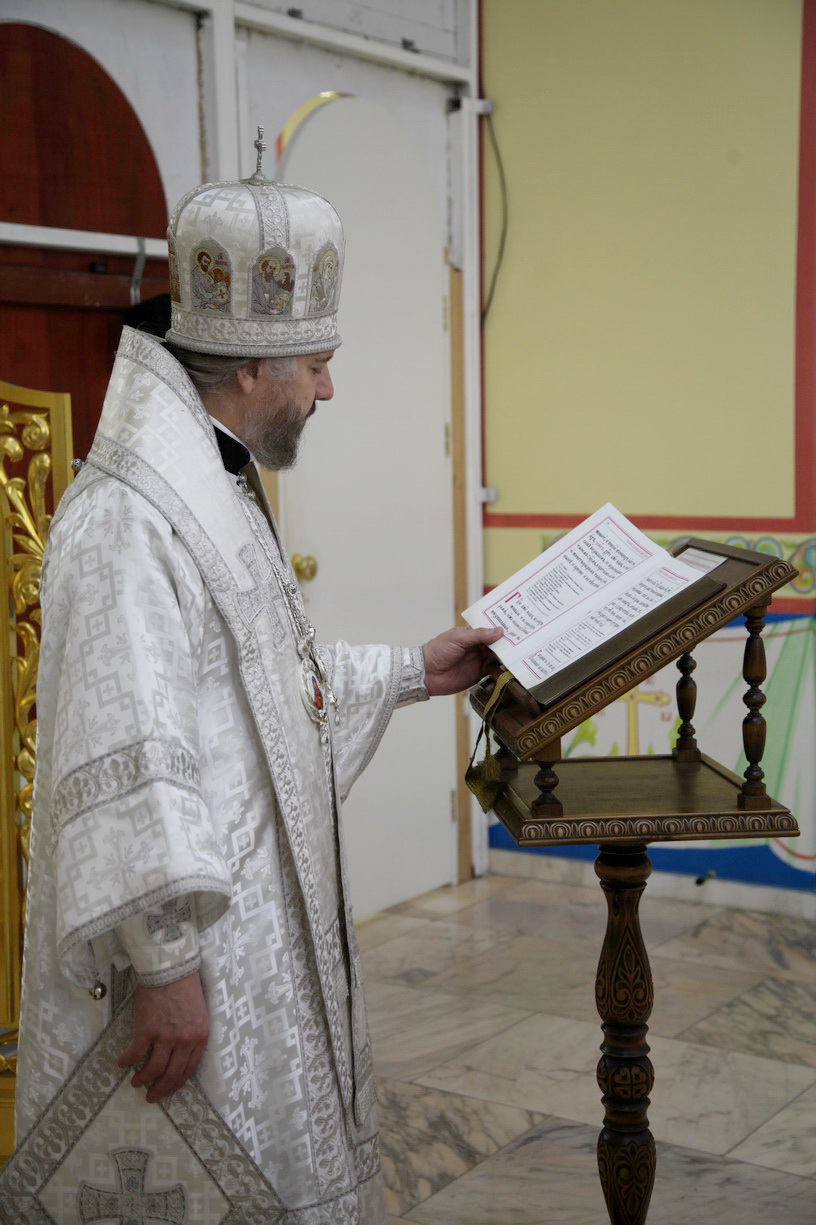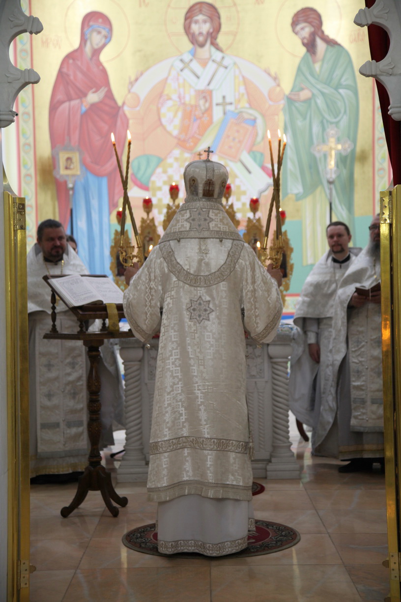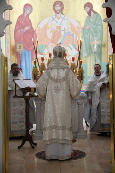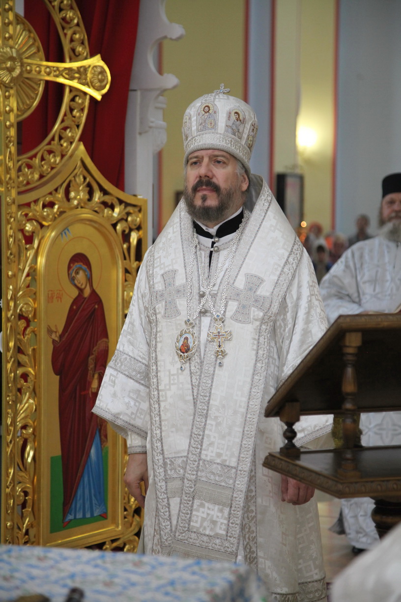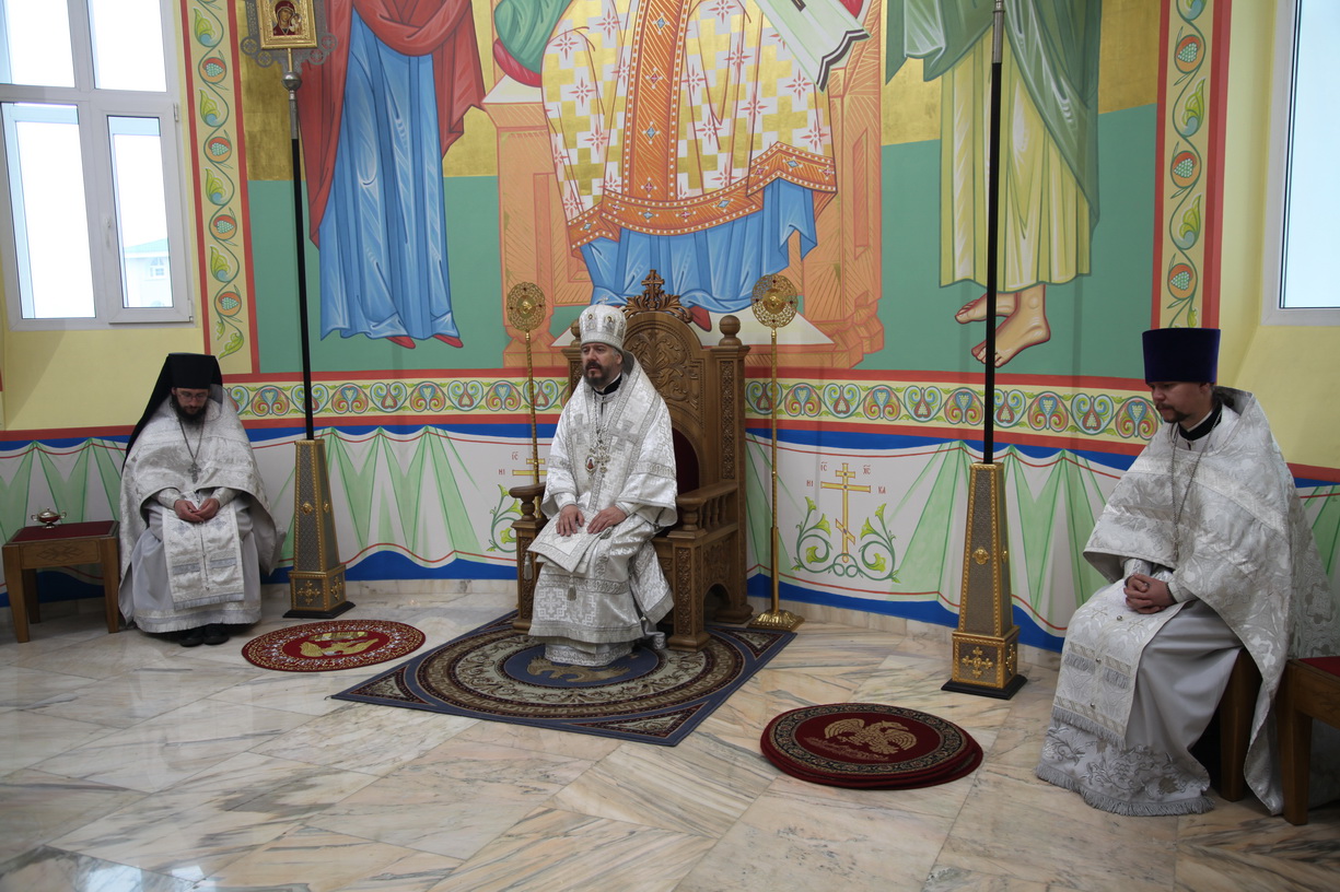 Его Преосвященству сослужили: иерей Виталий Шаркеев; иерей Георгий Москаленко; иерей Андрей Попов; иеромонах Ермоген (Крещенко).