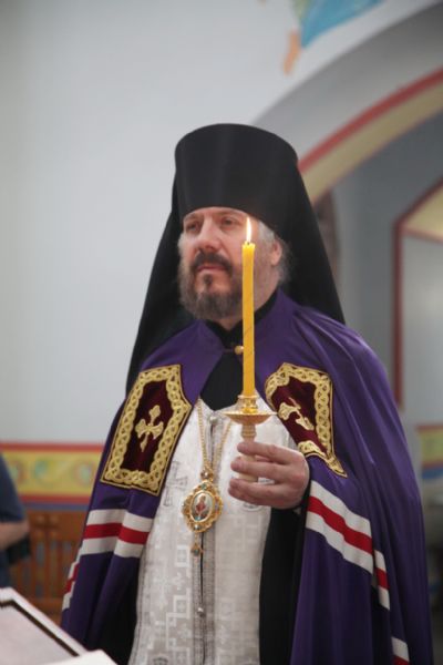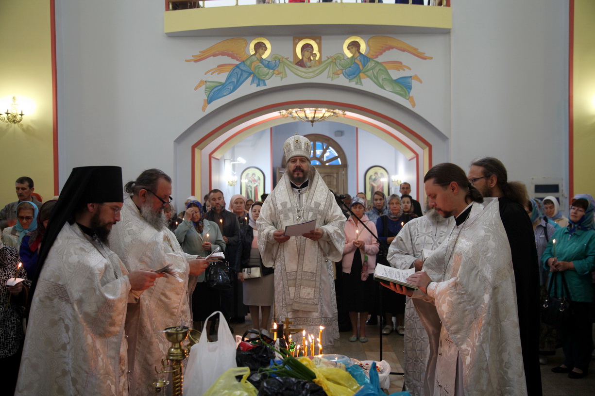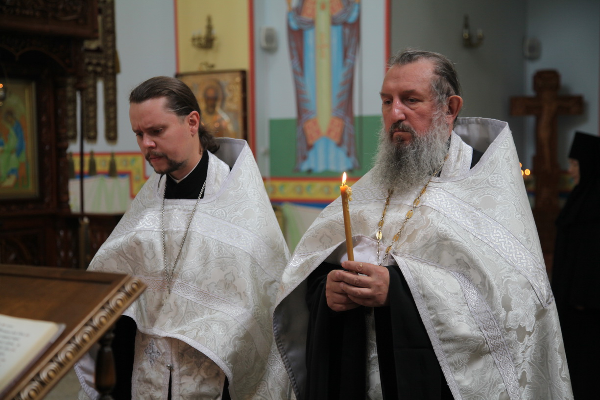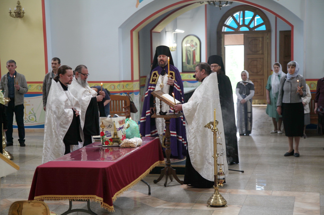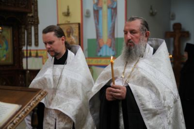 Его Преосвященству сослужили: иерей Виталий Шаркеев; иерей Георгий Москаленко; иерей Андрей Попов; иеромонах Ермоген (Крещенко).