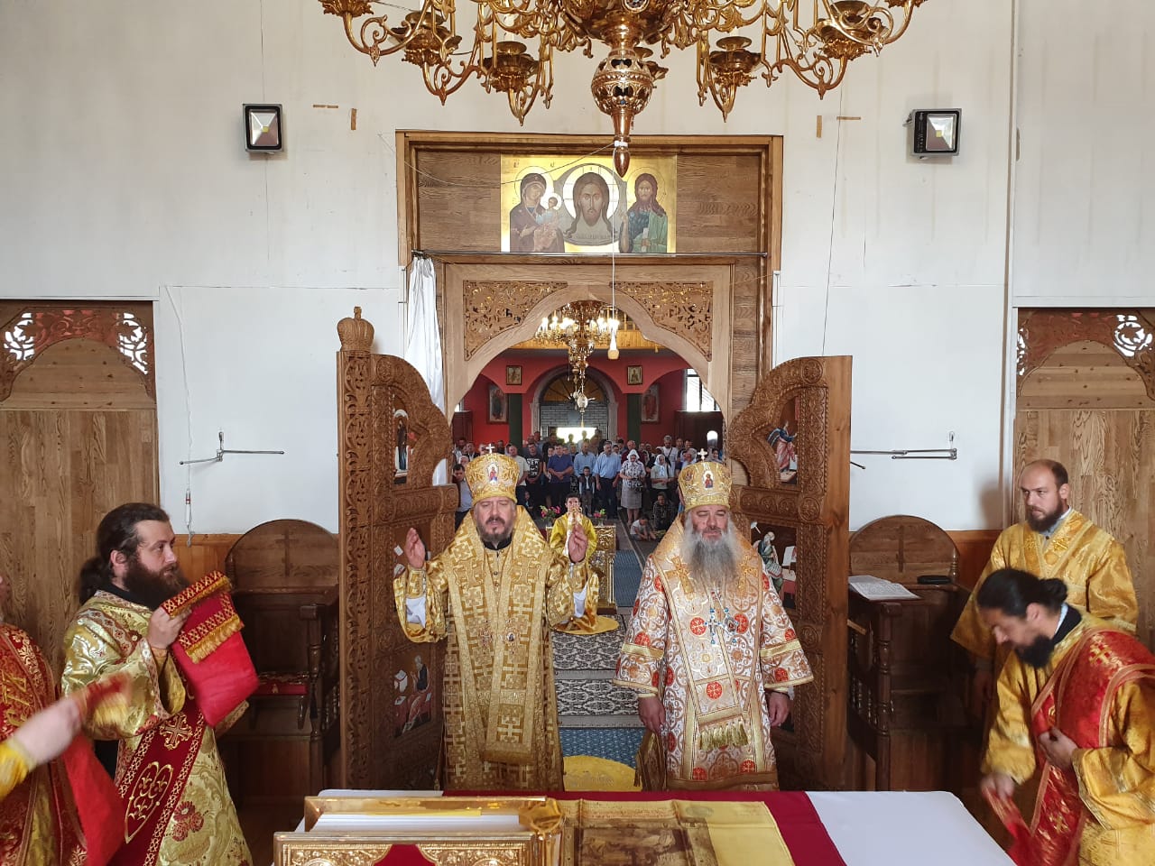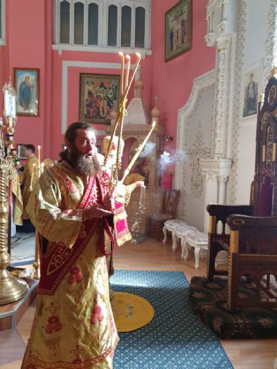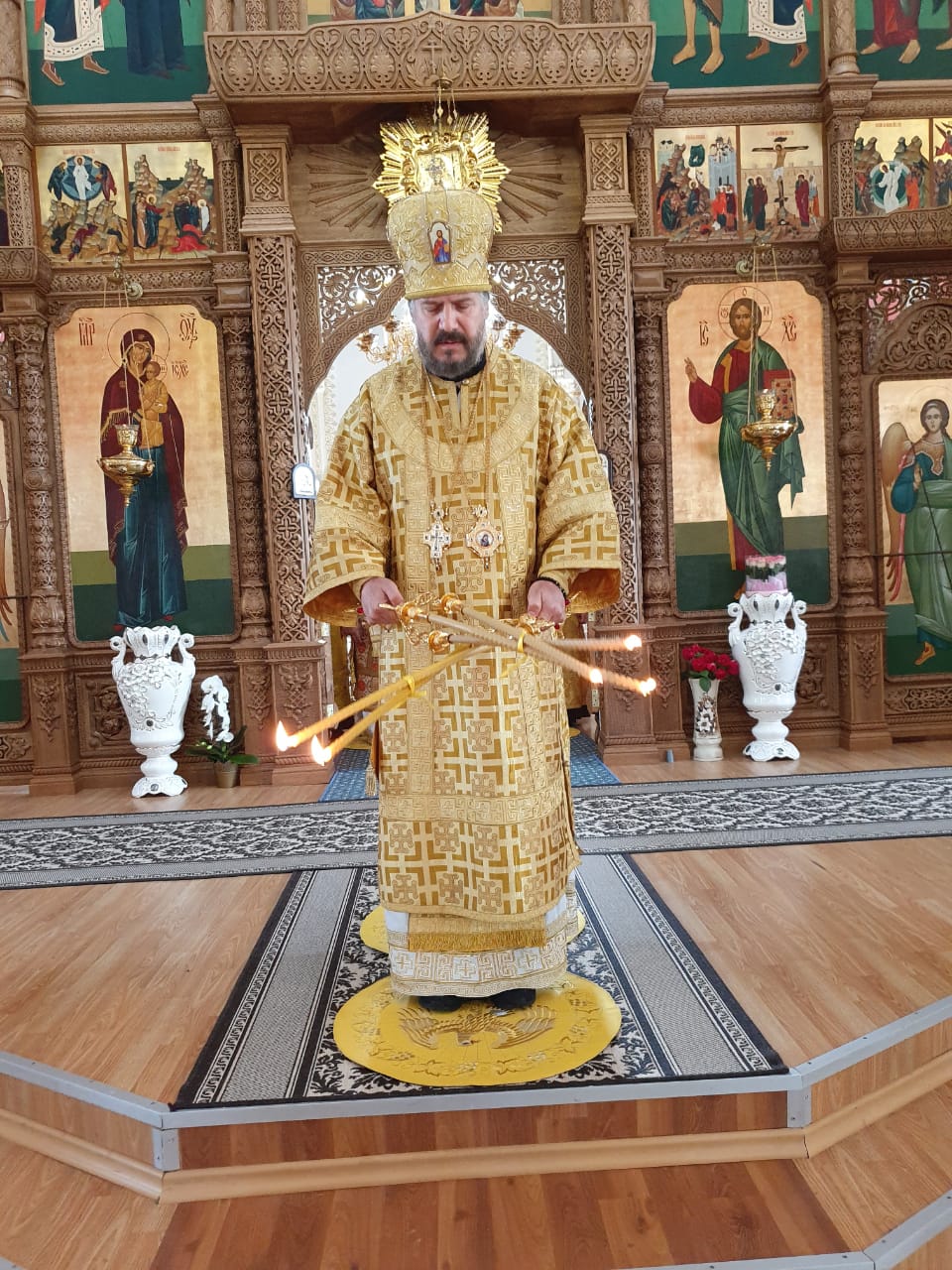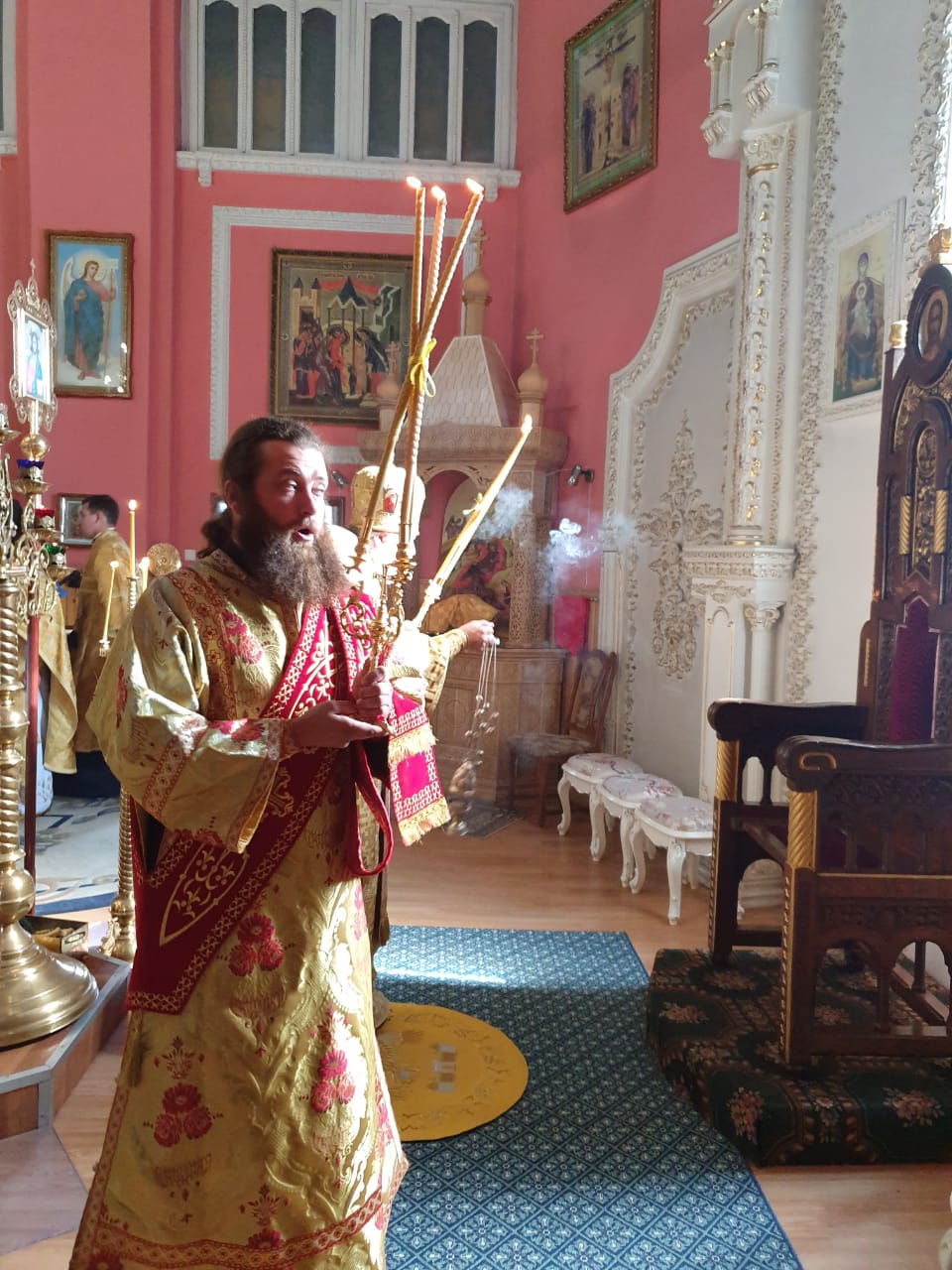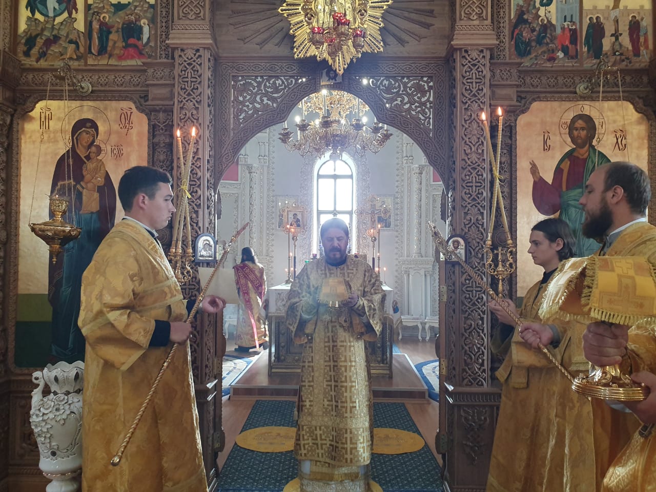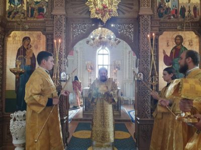 Божественную литургию возглавил епископ Находкинский и Преображенский Николай, ему сослужили: епископ Шепетовский и Славутский Евсевий (Дудка); архимандрит Серафим (Дудка), наместник Иоанно-Богословского монастыря; братия обители в священном сане, клирики монастыря.
