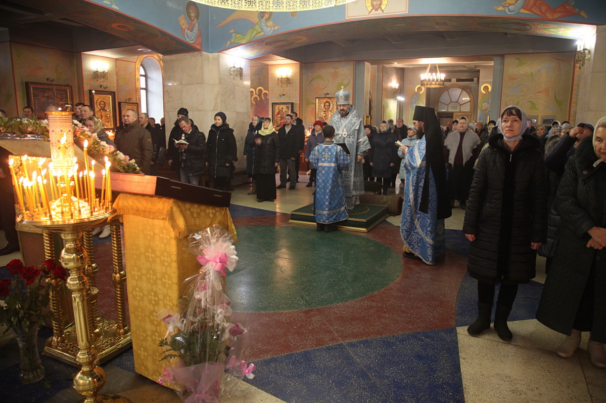 Его Преосвященству сослужили: иерей Георгий Москаленко; иерей Андрей Калнин; иерей Виталий Шаркеев; иерей Андрей Попов; иеромонах Ермоген (Крещенко) и клирики в диаконском чине.
