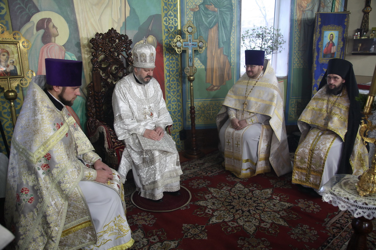 Его Преосвященству сослужили: иерей Иван Капитанюк, настоятель Свято-Рождественского храма, иерей Роман Капитанюк, настоятель храма св. апостола Андрея первозванного ЗАТО г. Фокино, иеромонах Ермоген (Крещенко), клирик Казанского Кафедального собора г. Находки.