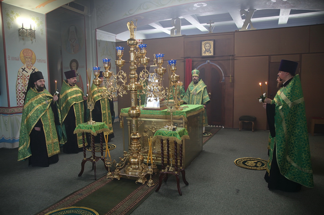 Владыке сослужили: иерей Георгий Москаленко; иерей Андрей Калнин, ризничий собора; иерей Виталий Шаркеев; иерей Андрей Попов; иеромонах Ермоген (Крещенко).