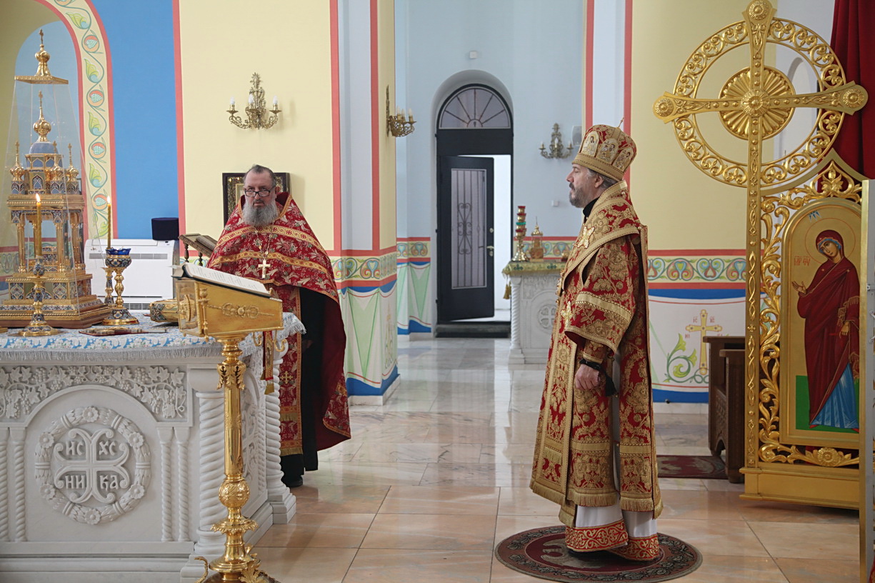 За всенощным бдением Его Преосвященству сослужил иерей Георгий Москаленко.