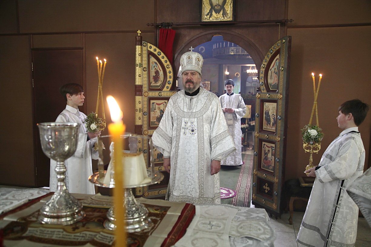 По заамвонной молитве епископ Николай возглавил праздничное славление и поздравил прихожан с попразднством Рождества Христова, а причастников — с принятием Святых Христовых Таин.