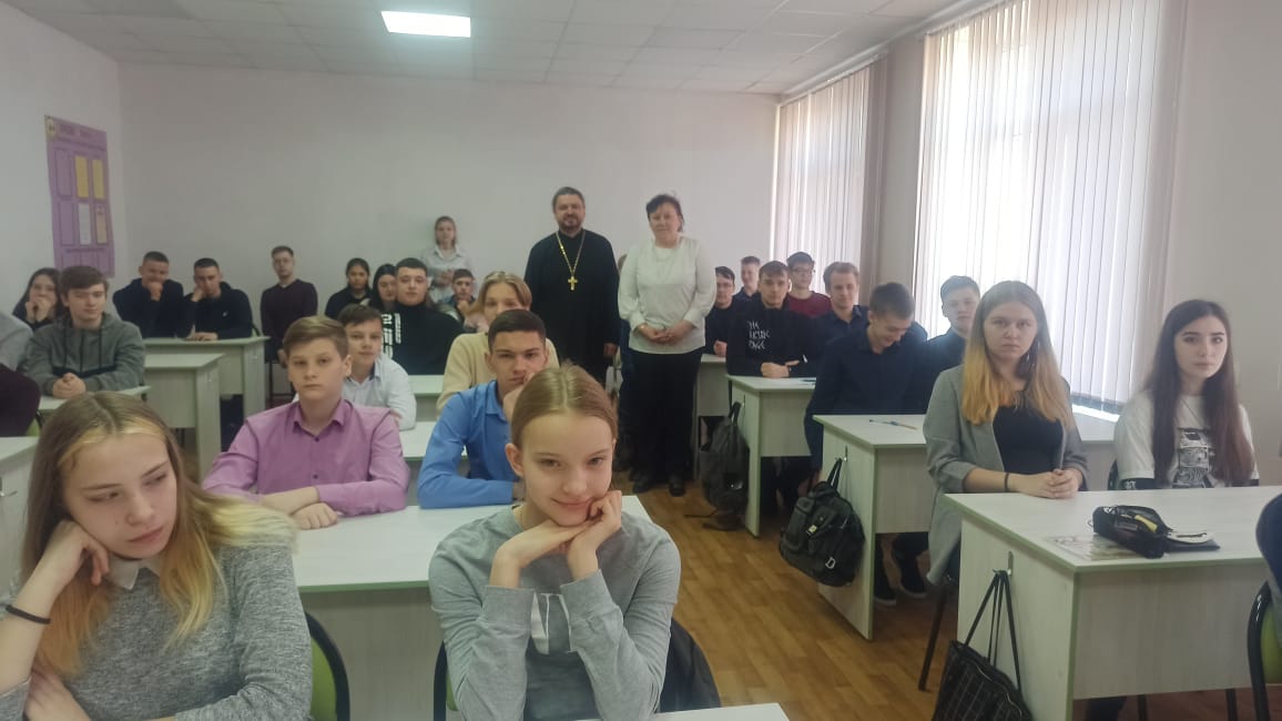 Иерей Виталий Шаркеев посетил среднюю образовательную школу № 22 г. Находки и побеседовал с учащимися 11-го класса на тему "Добрачные отношения".