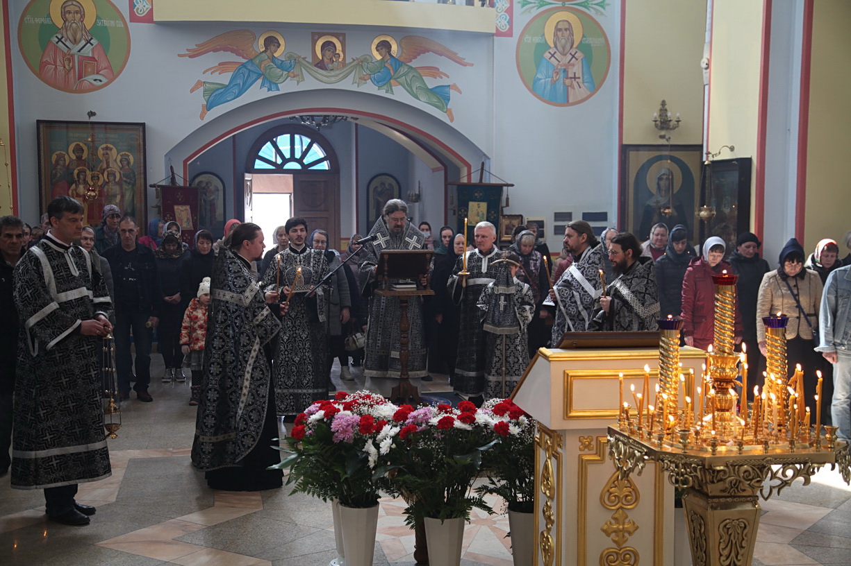 После того, как Святая Плащаница была внесена в храм и положена на гробницу, Его Преосвященство обратился к присутствующим с архиерейским словом: