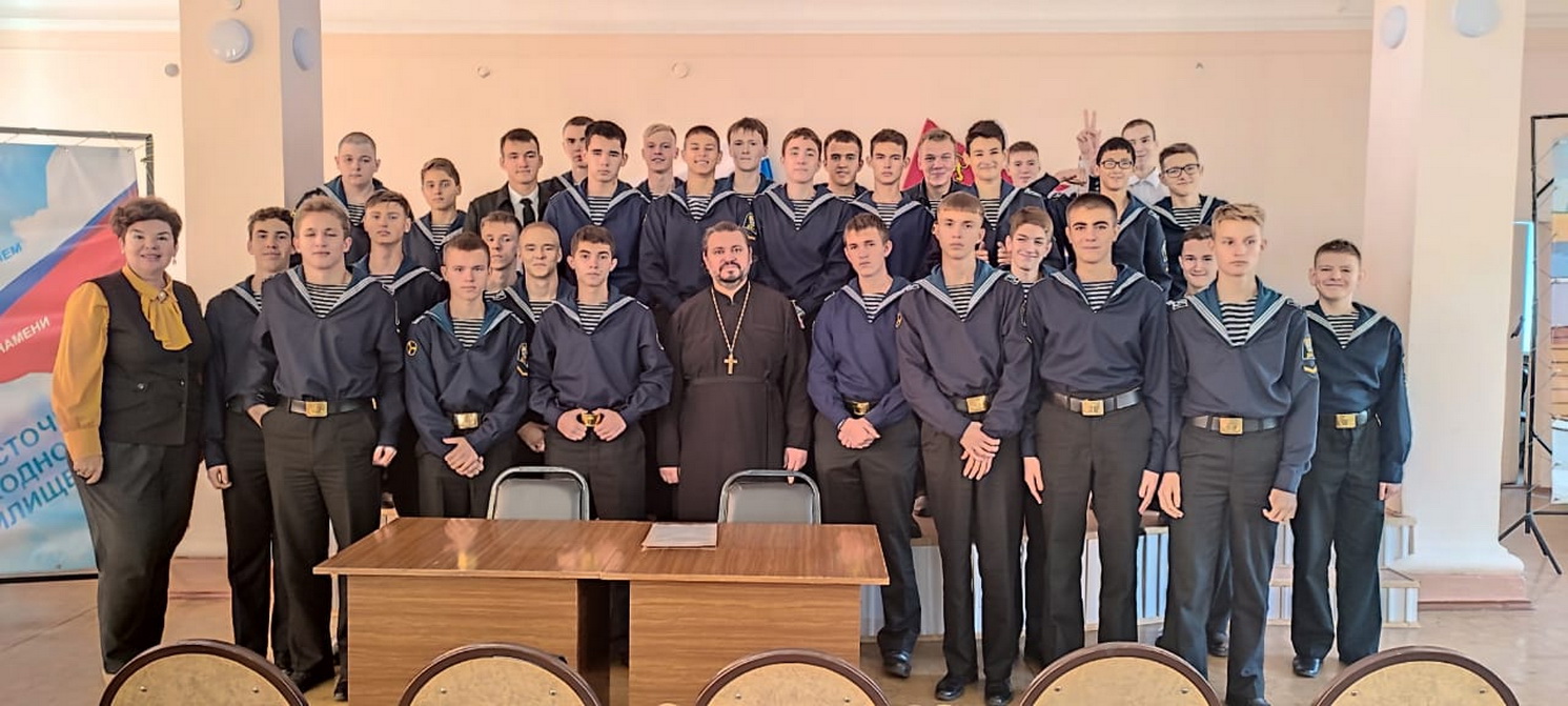 О святом благоверном князе Александре Невском беседовал иерей Виталий Шаркеев, руководитель информационного отдела Находкинской епархии с кусантами 411 группы Дальневосточного мореходного училища (филиал Дальрыбвтуза) города Находки.