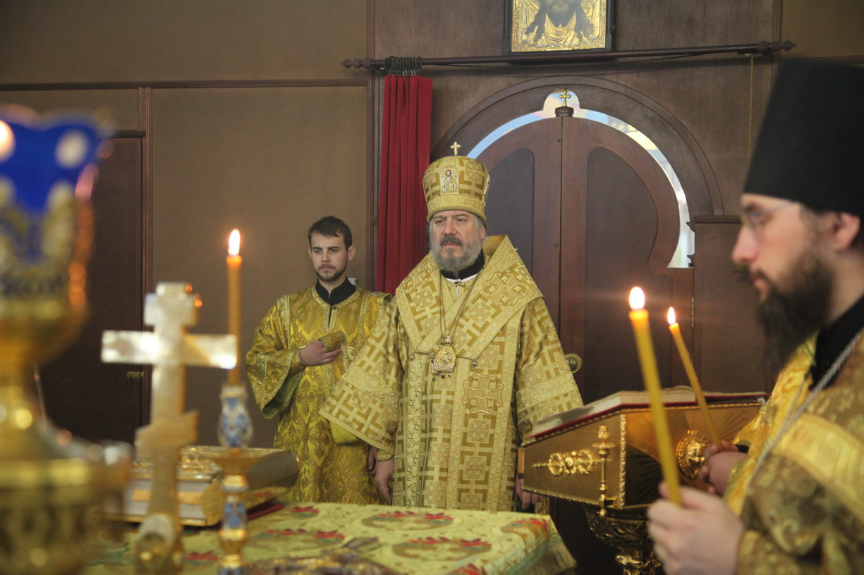 Его Преосвященству сослужили: иерей Андрей Калнин; иерей Виталий Шаркеев; иерей Андрей Попов и иеромонах Ермоген (Крещенко).