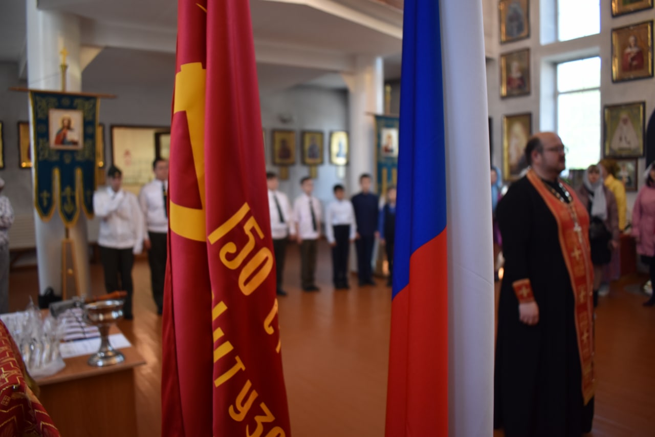 Событие совпало с днём памяти святых благоверных князей Бориса и Глеба, которые являются примером верности и любви к Отечеству. Иерей Роман Капитанюк, настоятель храма Святого Апостола Андрея Первозванного, поздравил кадетов, рассказал об этих святых князьях и совершил молебен. По традиции священник благословил ребят и окропил святой водой.