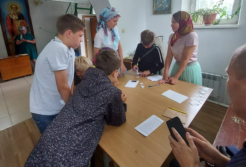 Проведению КВЕСТа помогла и погода: дождик, который обещали синоптики, отступил, чтобы не мешать ребятам. Командам предстояло пройти станции, которые были посвящены отдельным страницам жития святого. Конечно, ребята готовились, но на каждой станции организаторы знакомили их с отдельными эпизодами из жизни преподобного, а потом они выполняли задания. Участникам пришлось разгадывать загадочное послание, вспомнить родных Сергия, построить храм, записать при помощи цифири памятные даты, восстановить события на Куликовом поле, вспомнить святых соработников прп. Сергия, а на последней станции восстановить главные страницы жития святого подвижника. Ребята успешно справились со всеми заданиями. Пока большие ребята проходили станции, малыши читали житие прп. Сергия для детей с иллюстрациями, и не менее успешно, чем их старшие братья и сестры, выполняли задания, предложенные в книжке. По итогам КВЕСТа победителем стала команда храма апп. Петра и Павла, 2-е место заняла команда храма Иверской иконы Божией Матери, 3-е место – храма свт. Николая Чудотворца, 4-е – воспитанников "Центра содействия устройства детей в семью". Настоятель храма поздравил всех участников, вручил грамоты, сертификаты за победу и участие, сладкие призы. По традиции всех ждал праздничный обед в трапезной. А потом на прихрамовой территории дети из разных приходов вместе играли, а родители общались. Храм свт. Николая Чудотворца будет рад предоставить материалы КВЕСТа для проведения на приходах.
