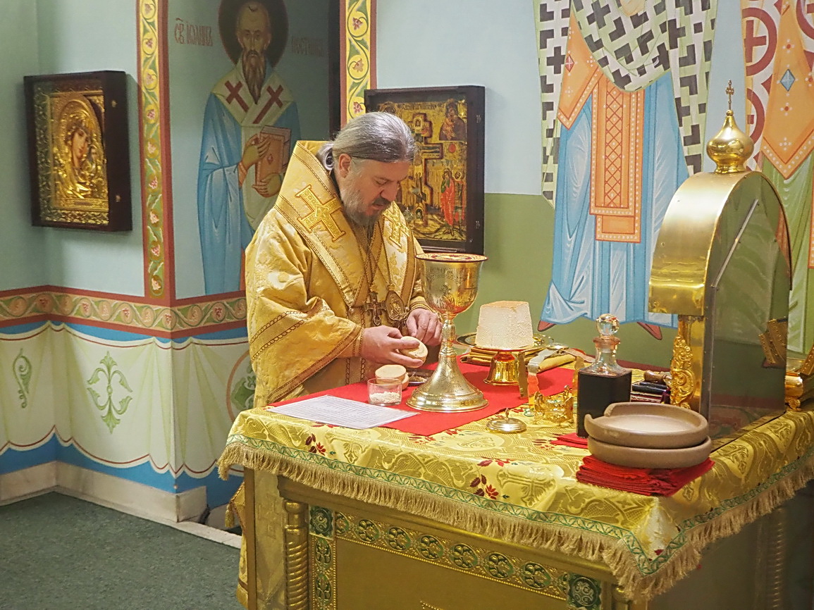 Его Преосвященству сослужили: иерей Андрей Калнин, ризничий Казанского собора; иерей Андрей Попов; иеромонах Ермоген (Крещенко); иерей Иоанн Гречишников.