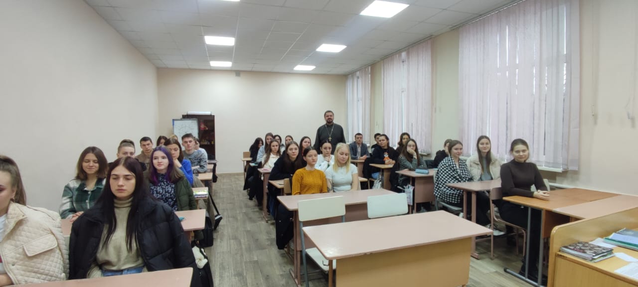 Руководитель миссионерского отдела Находкинской епархии иерей Виталий Шаркеев провёл лекцию для студентов Находкинского гуманитарно-технического колледжа. Священник побеседовал с группой будущих юристов на тему: "Влияние инородных праздников на русскую культуру".