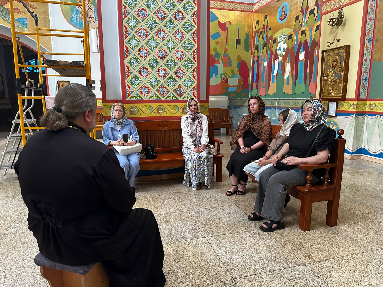 Иерей Виталий Шаркеев встретился с женами участников СВО. Встреча прошла в верхнем храме Казанского кафедрального собора.