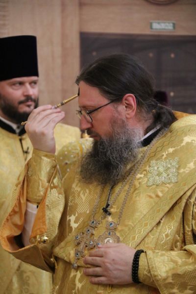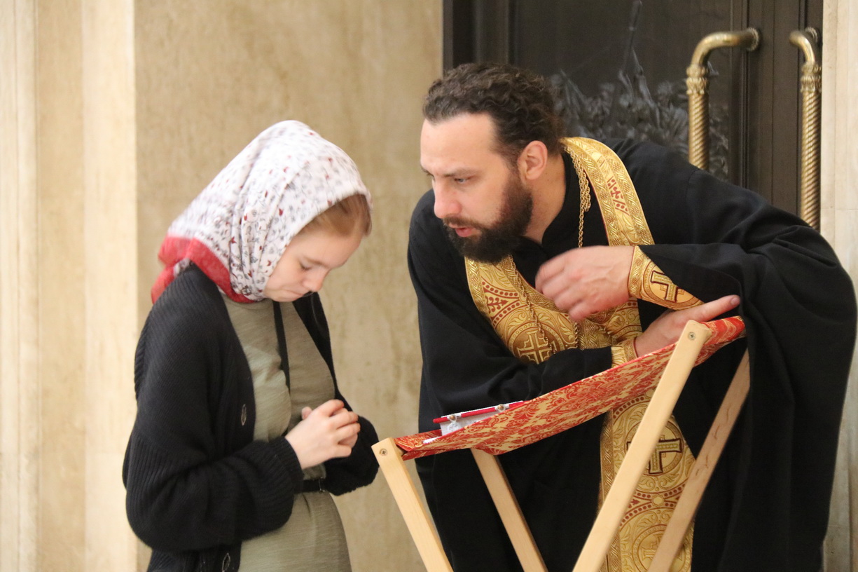 Во время утрени после целования праздничной иконы, в знак милости Божией ко всем грешникам, митрополит Павел помазал молящихся освященным елеем.