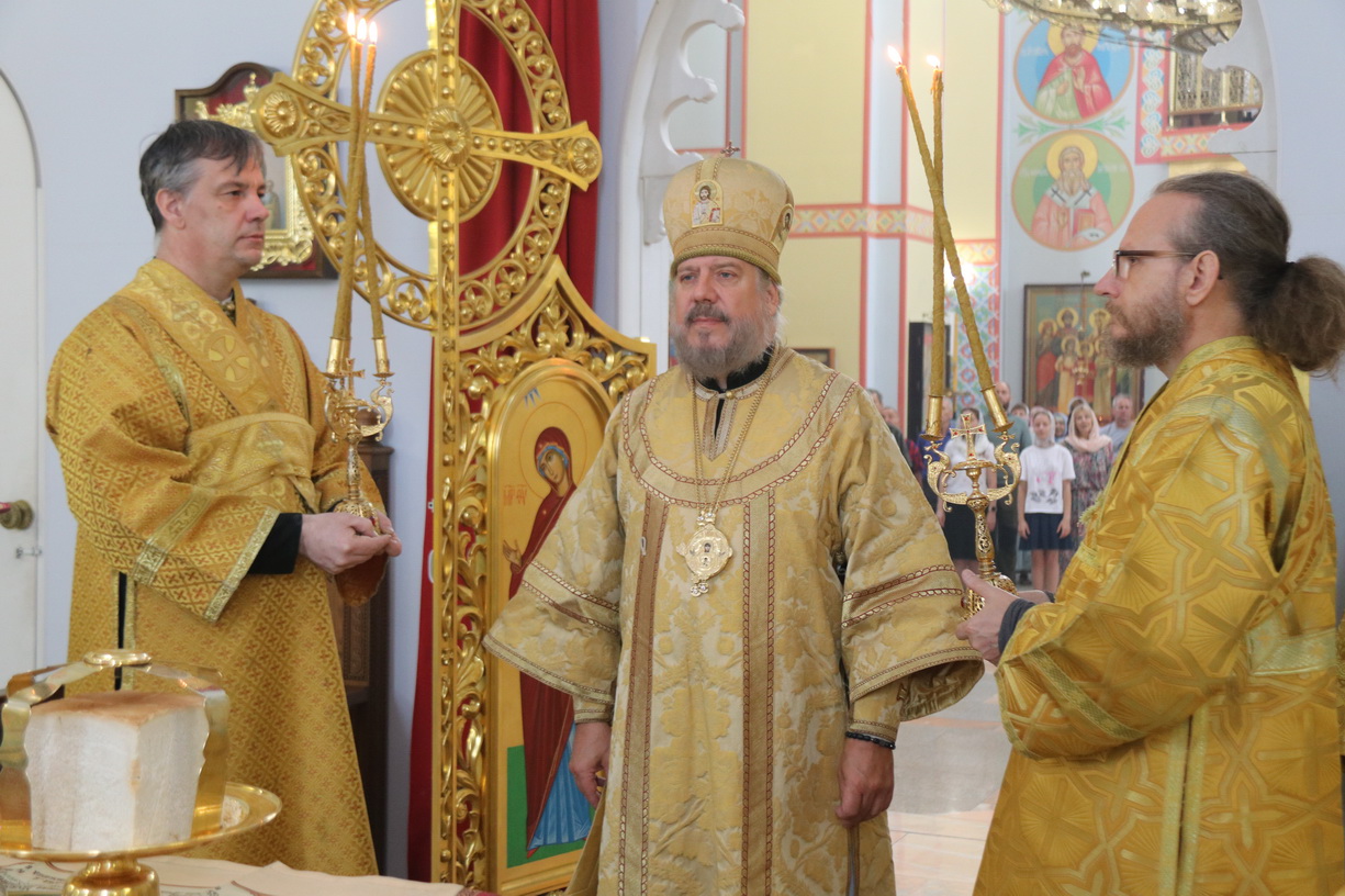 Его Преосвященству сослужили: иерей Андрей Калнин, ризничий Казанского собора; иерей Андрей Попов; иеромонах Ермоген (Крещенко); иерей Иоанн Гречишников и иерей Илия Гречишников.