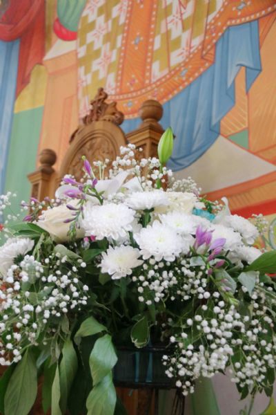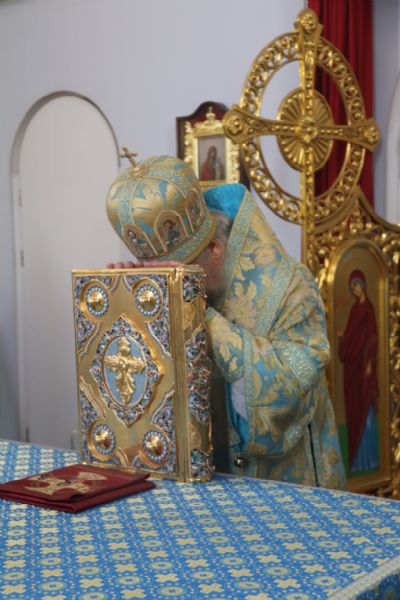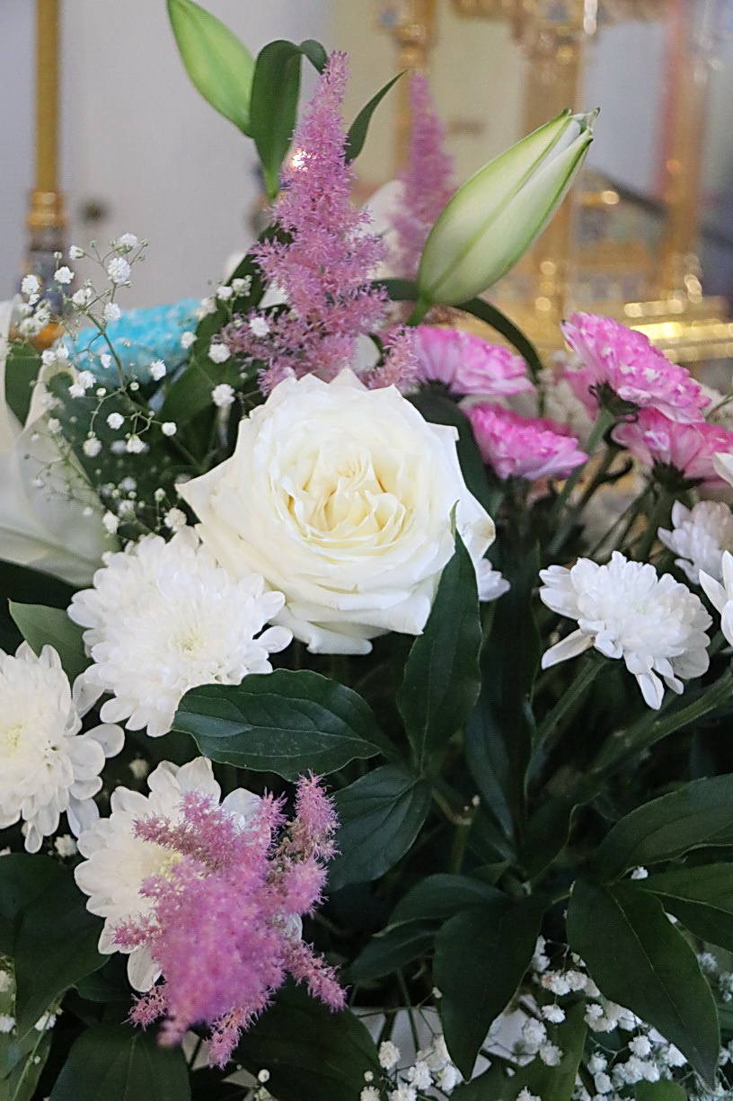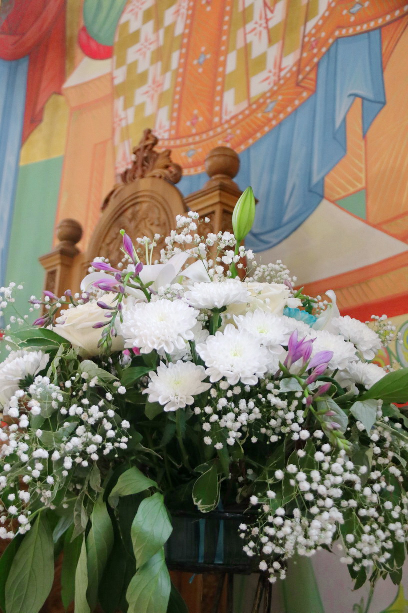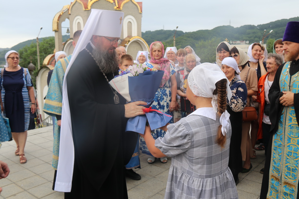 В завершение богослужения епископ Николай обратился к митрополиту Павлу и епископу Гурию со словами приветствия и преподнес им букеты цветов и поблагодарил правящего архиерея за визит и совместные молитвы.