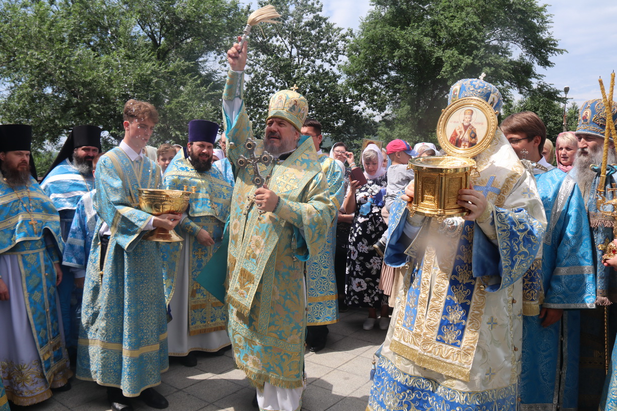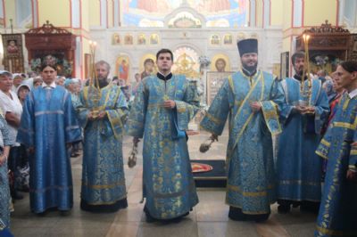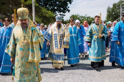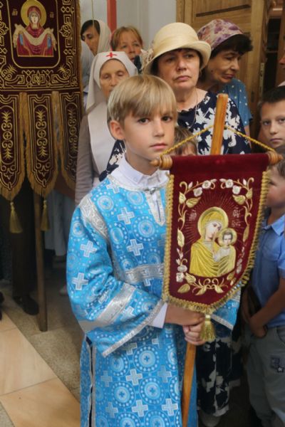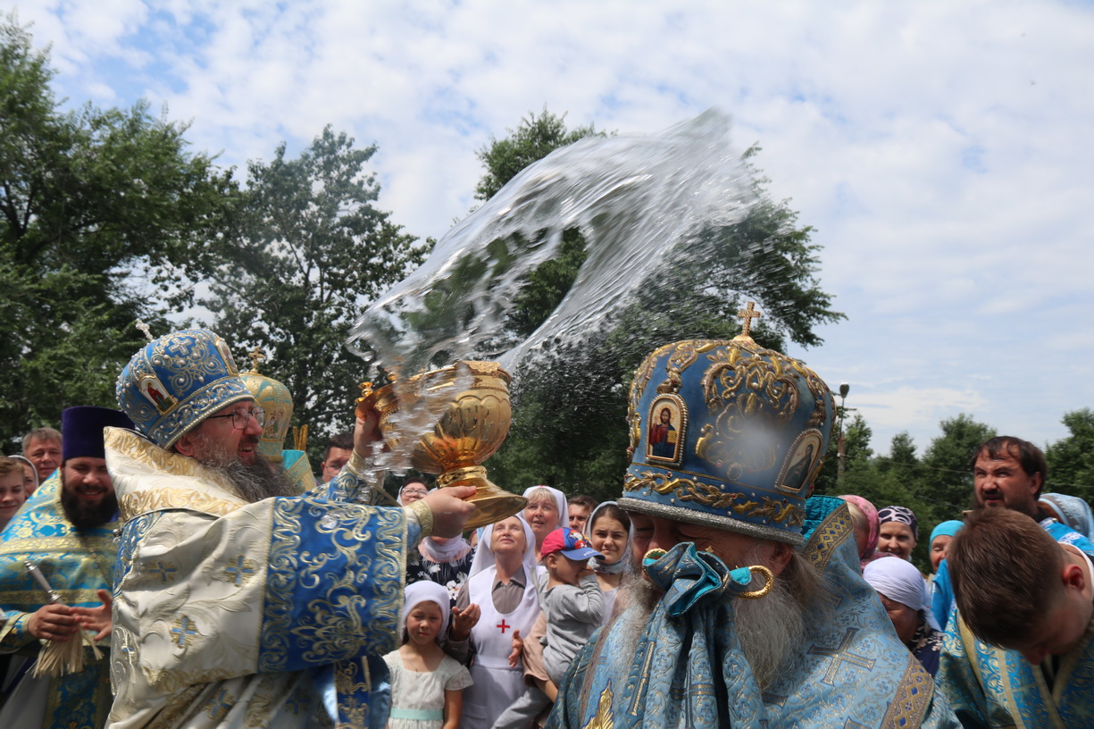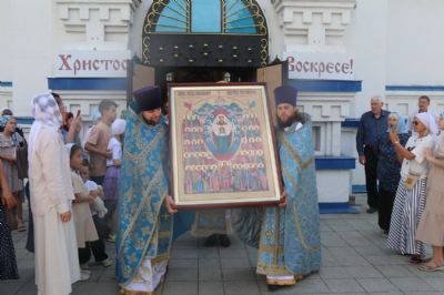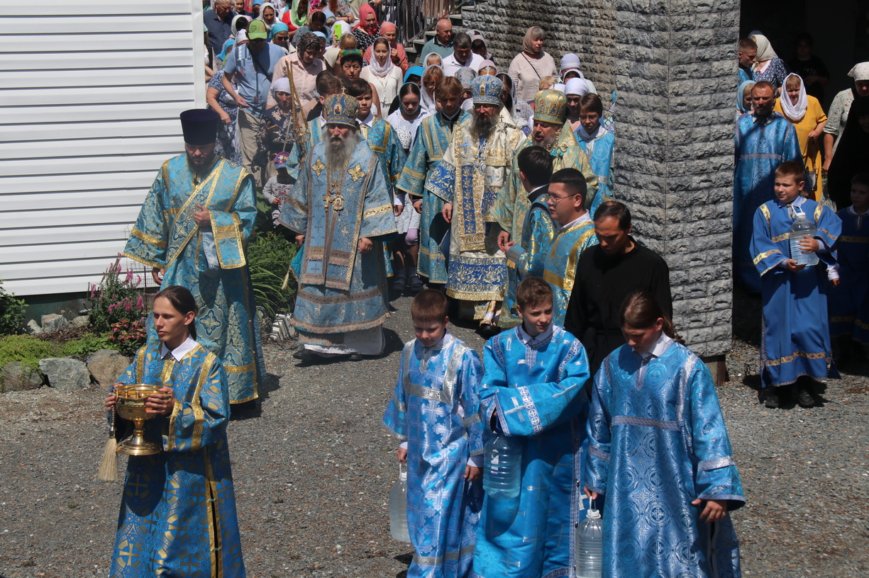 После заамвонной молитвы архипастыри, духовенство и верующие совершили с чтимой иконой крестный ход вокруг храма, было прочитано Богородичное зачало из Евангелия, а верующих окропляли святой водой.